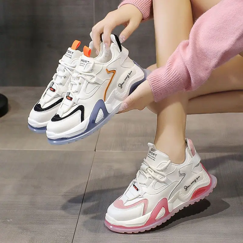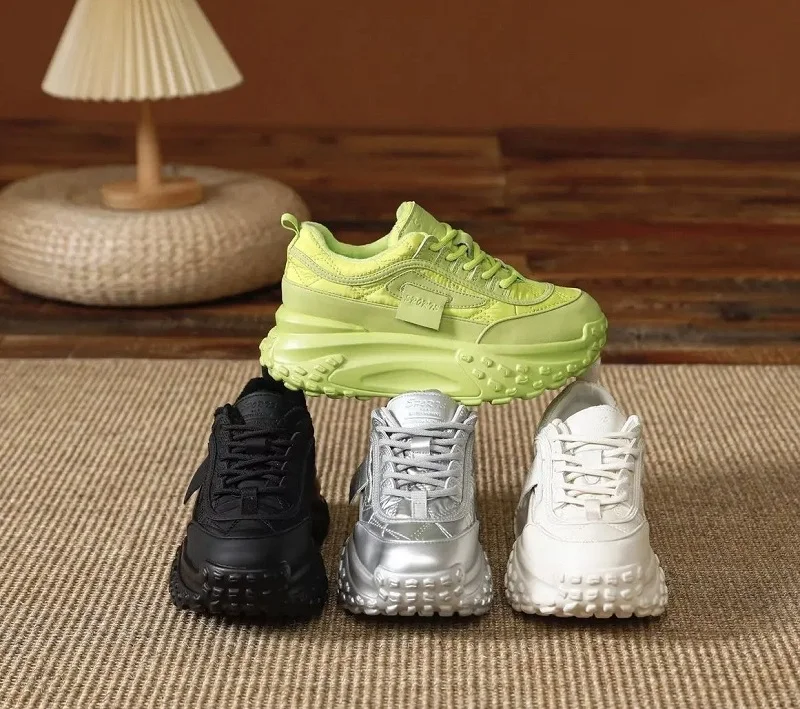 Spring Bright Purple Color Chunky Shoes Women’s Vulcanized Sneakers Platform Shoes New Girls Wedge Leather Sneakers Woman Shoes