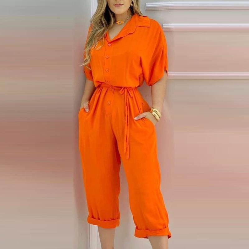 Be the first to review “Spring / Summer New Women’s Wear, Solid Color Splicing Cotton Orange Loose Short Sleeve One-piece Trouser Belt, This Cloth”