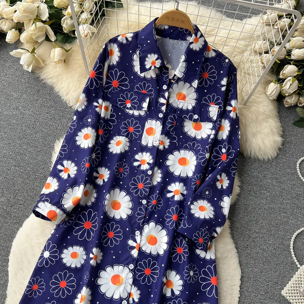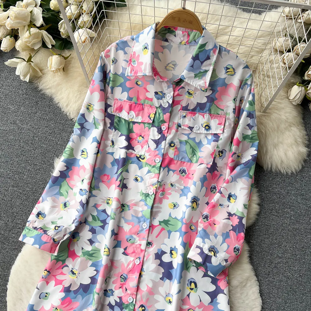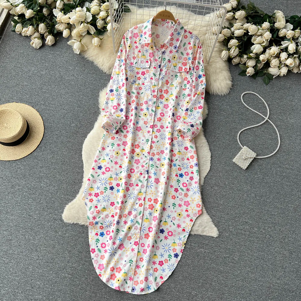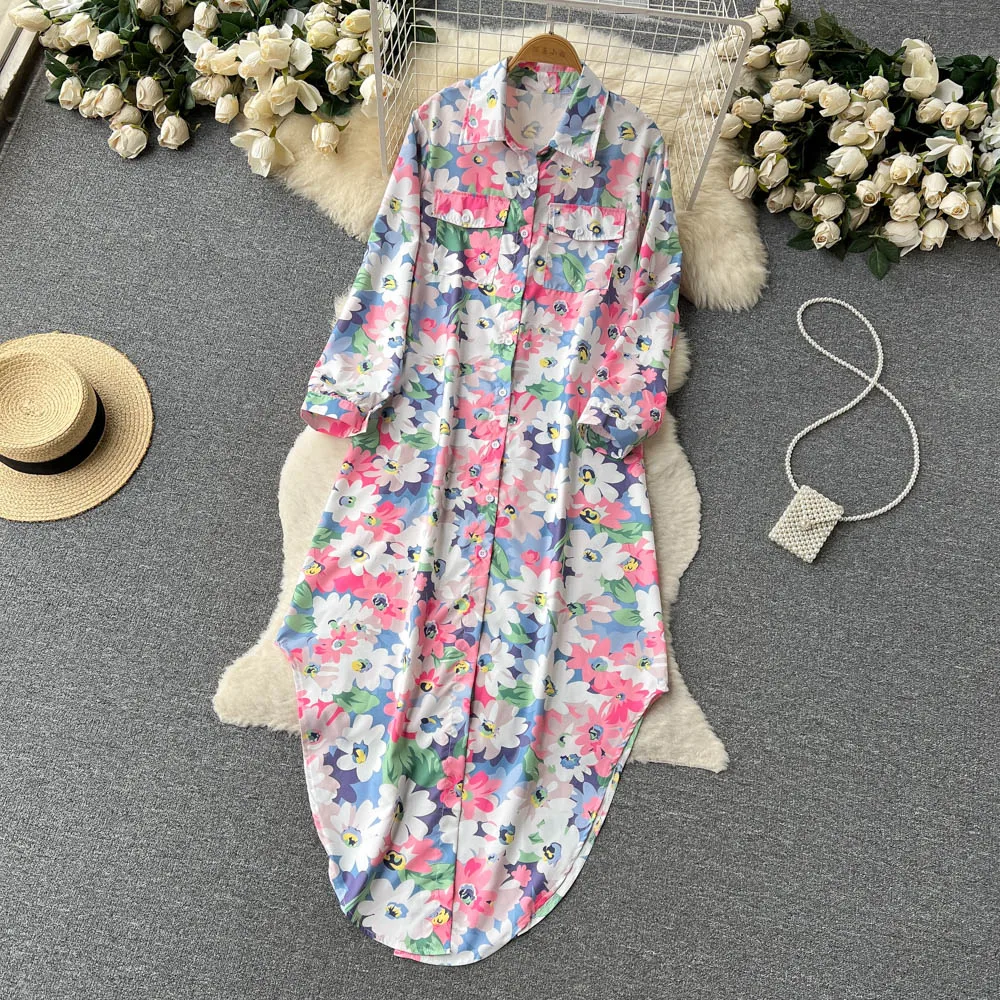 Spring Women Floral Casual Midi Shirts Dress Elegant Loose Single Breasted Vintage Party Maxi Vestidos Female Fashion Mujers New