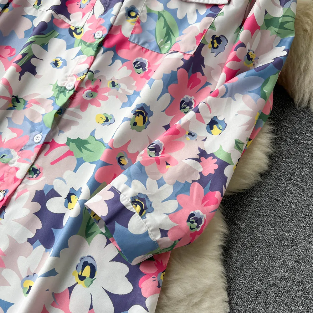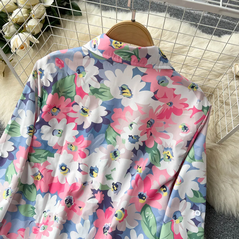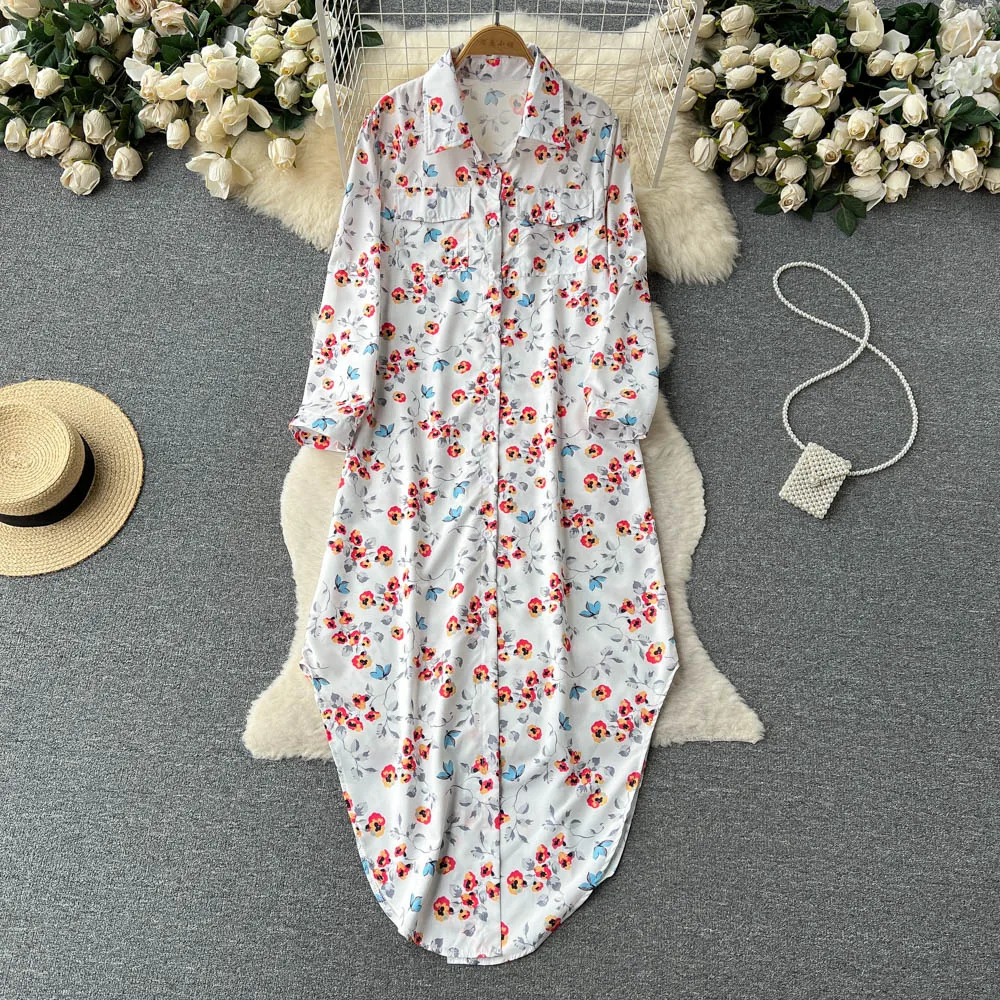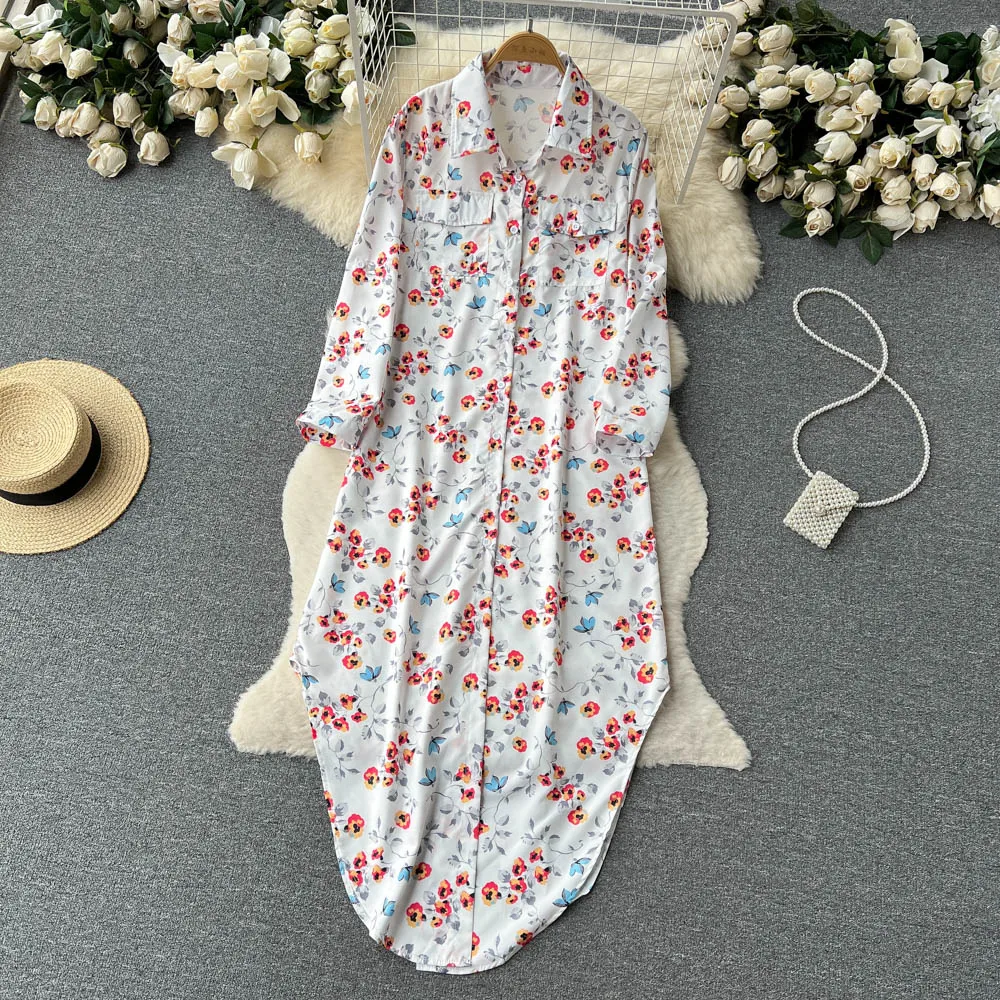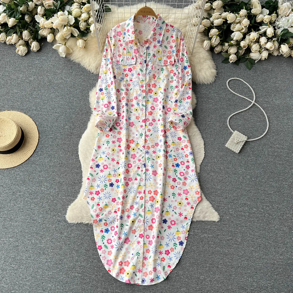 Spring Women Floral Casual Midi Shirts Dress Elegant Loose Single Breasted Vintage Party Maxi Vestidos Female Fashion Mujers New