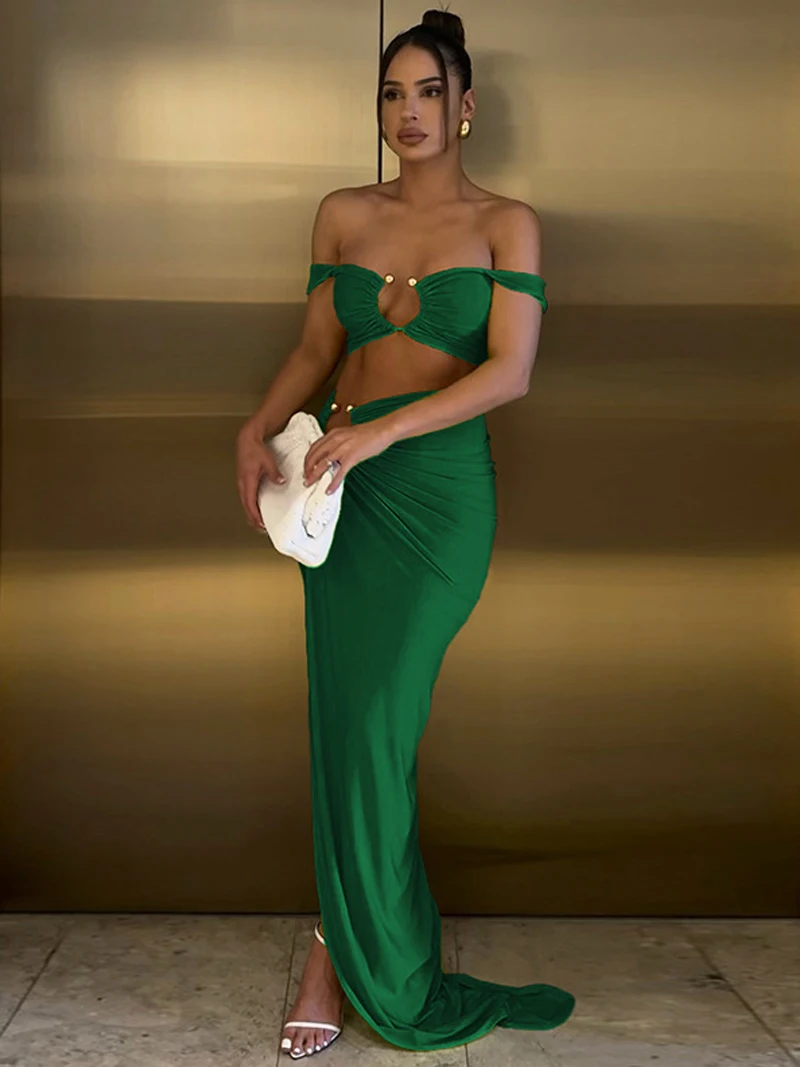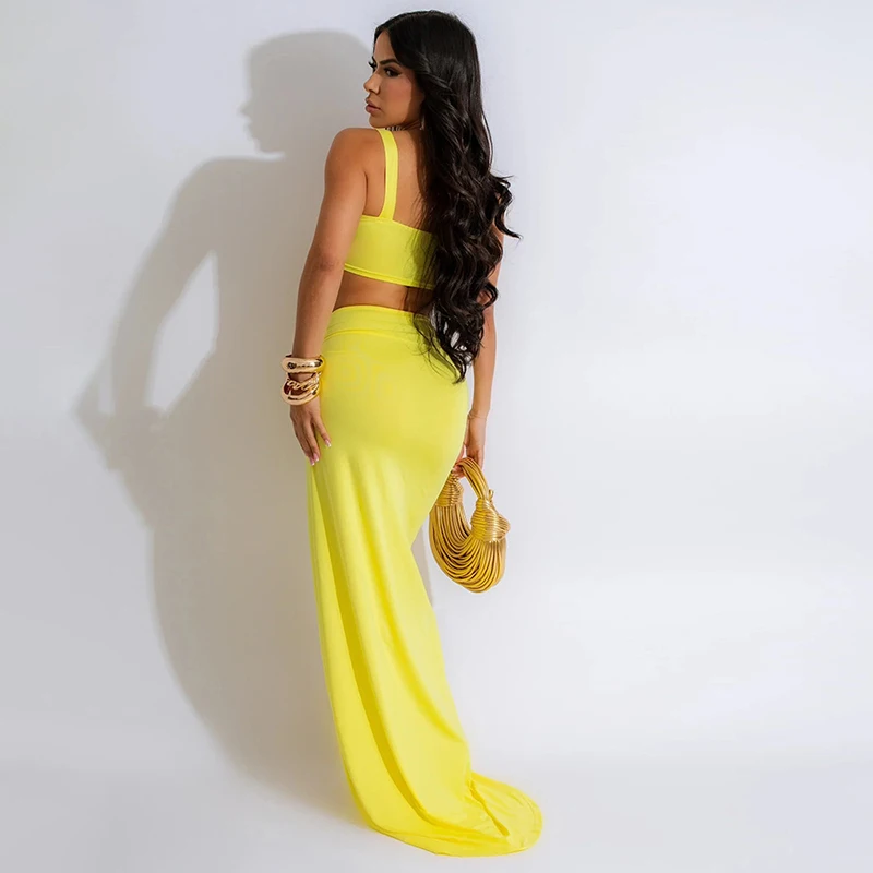 Summer Beach Outfits For Women Crop Top And Skirt Two Piece Set Sexy Vacation Holiday Outfits Asymmetrical Long Skirt Sets