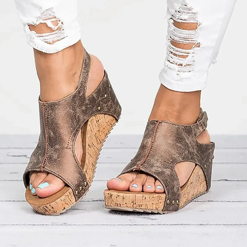The New Casual Wedge Sandals Women Summer Fashion Elegant Non-slip Platform Heels Rubber Sole Buckle Peep Toe Roman Shoes