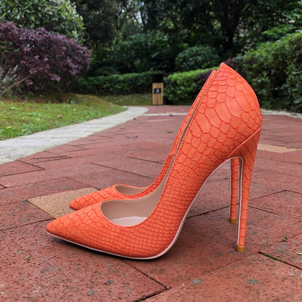 Orange Croc-Effect Women Pointy Toe High Heels Slip On Stilettos Pumps Ladies Party Dress Shoes 34-45