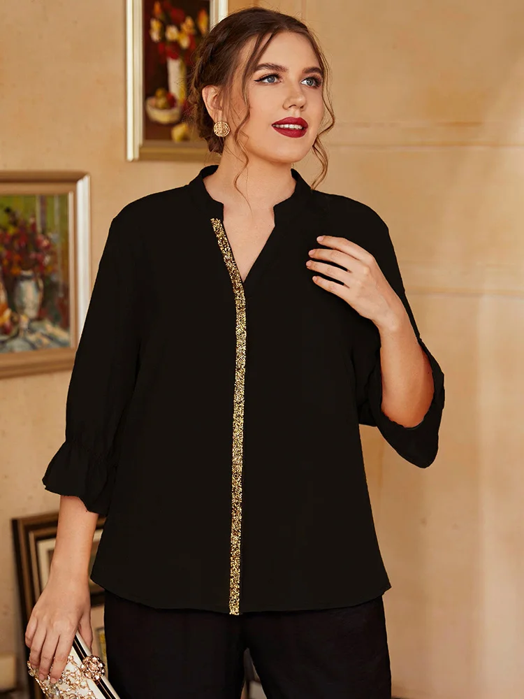 Cheap Clearance Outfits Fashion Women Black Blouse Plus Size Tops Spring Summer Long Sleeve Oversized Shirt Clothing