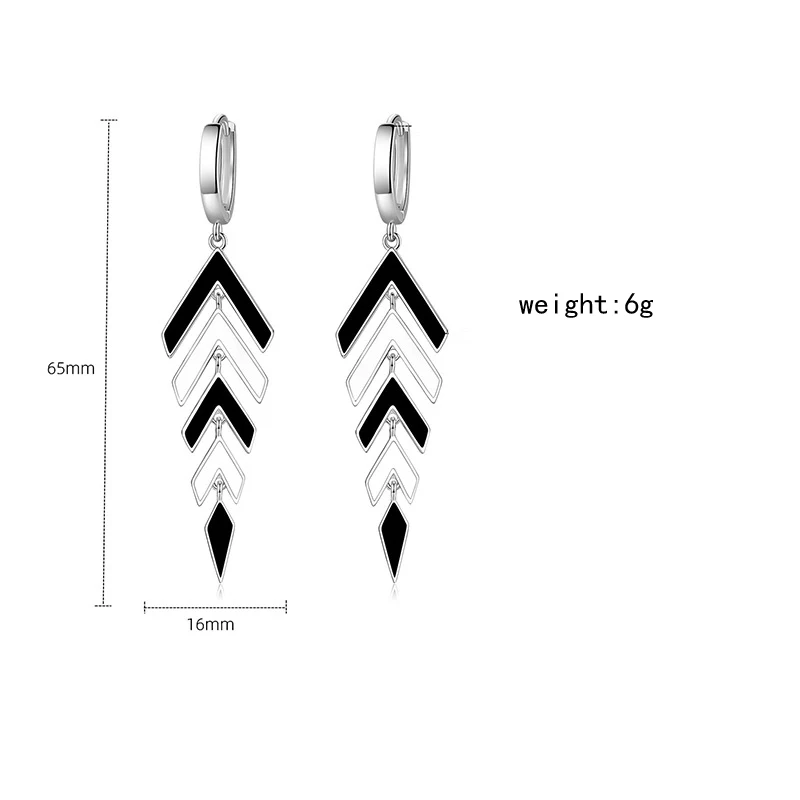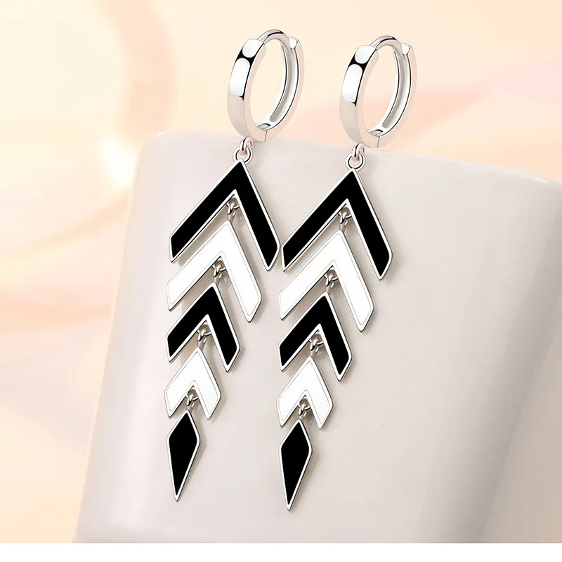 Trendy Chic Black White Arrow Long Tassel Hoop Earrings For Women 925 Sterling Silver Earring Lady Party Jewelry Gifts