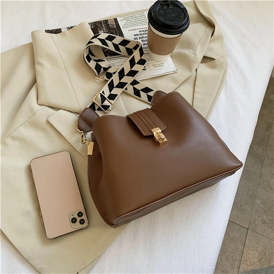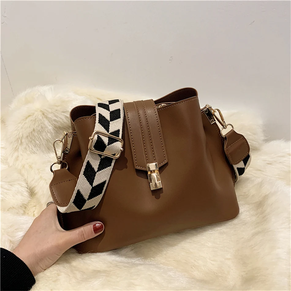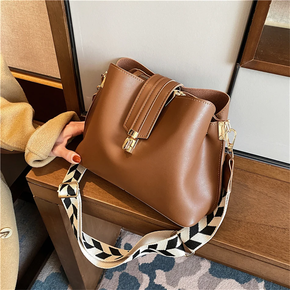 Vintage Simple Small PU Leather Bucket Crossbody Bags for Women Designer Fashion Lady Luxury Black Shoulder Handbags Totes