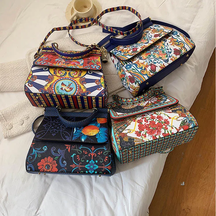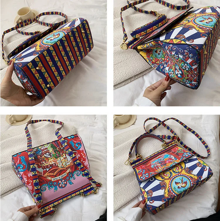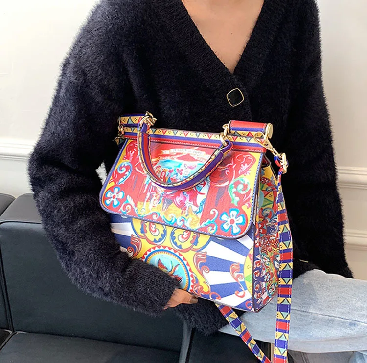Hot Sale Frame Printing Handbag Ladies Famous PU Crossbody Bag For Women New Luxury Designer Shoulder Bags