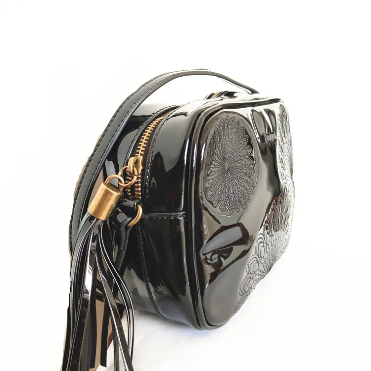 Original Spain Women’s Bag Dark Flower Clutch Patent Leather Tassel Messenger Bag Shoulder Bag