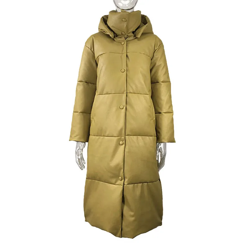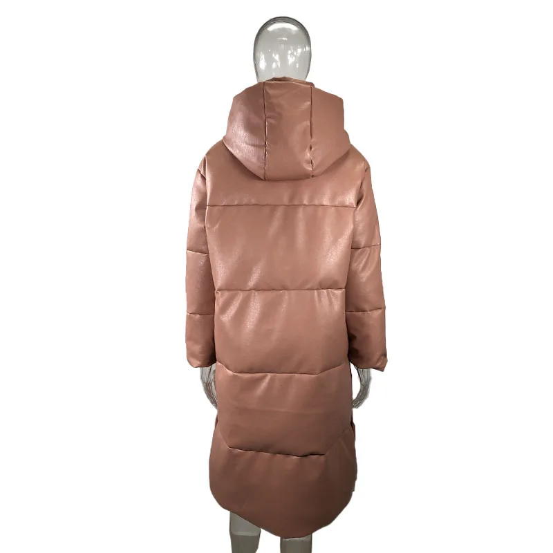 Winter Khaki Windproof Parkas Women Fashion Casual PU Leather Coats Women Elegant Long Cotton Jackets Female Ladies