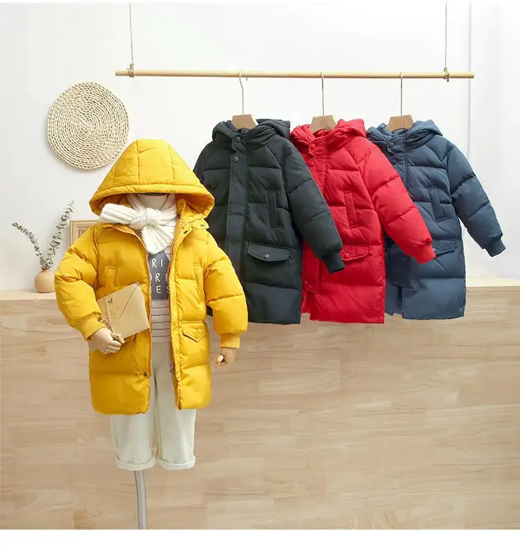 Winter Kids Girls Long Coats Children Boys Jackets Fashion Thick Hooded White Duck Down Snowsuit 2-14Y Teenagers Overcoat Parkas