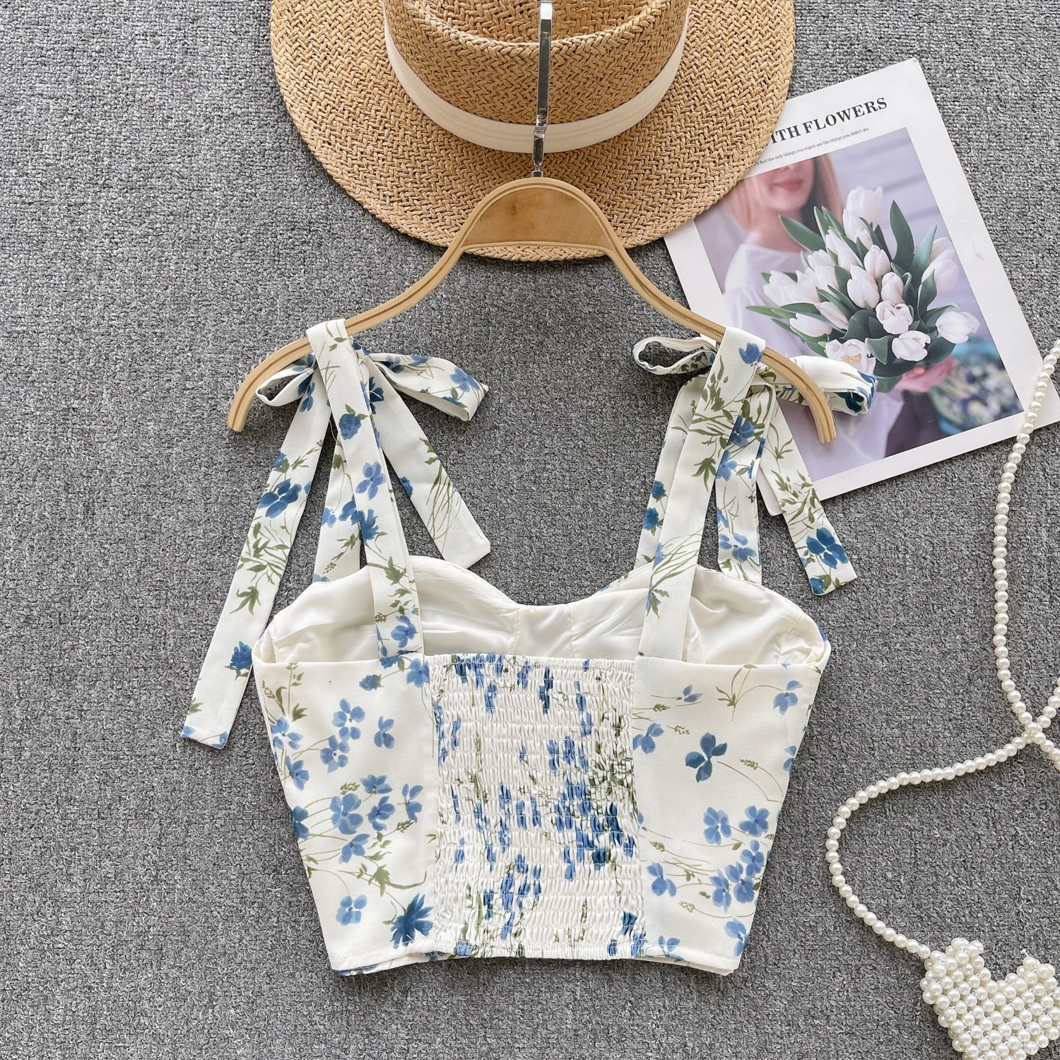 Be the first to review “Women Chic Print Pleated Bandage Sleeveless Strapless Tank Top Slim Sexy Korean Fashion Summer Women Top”