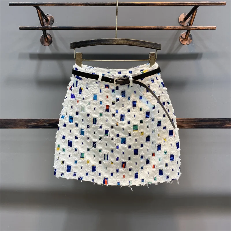 Women Colorful Denim Short Skirt Wrapped Hip Contrast High Waist A-line Mini Skirts Summer New Tide Mujer Faldas