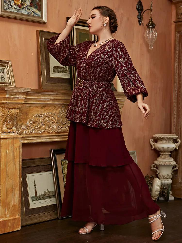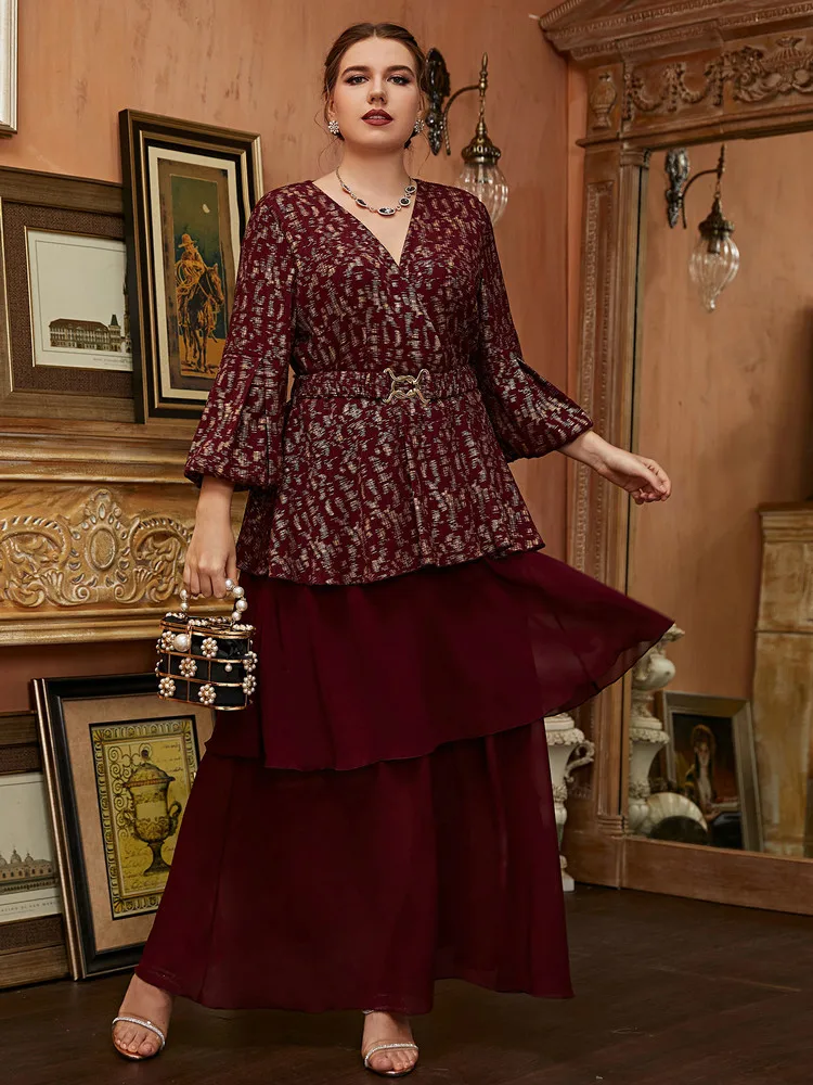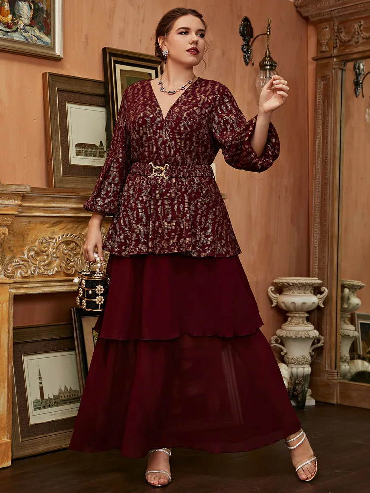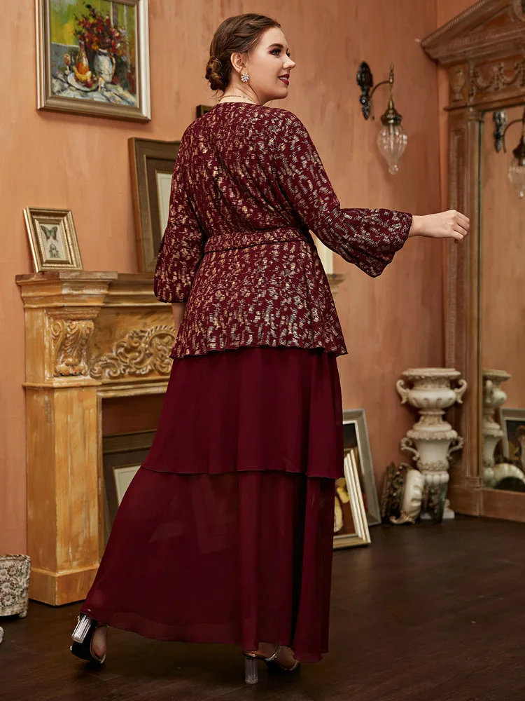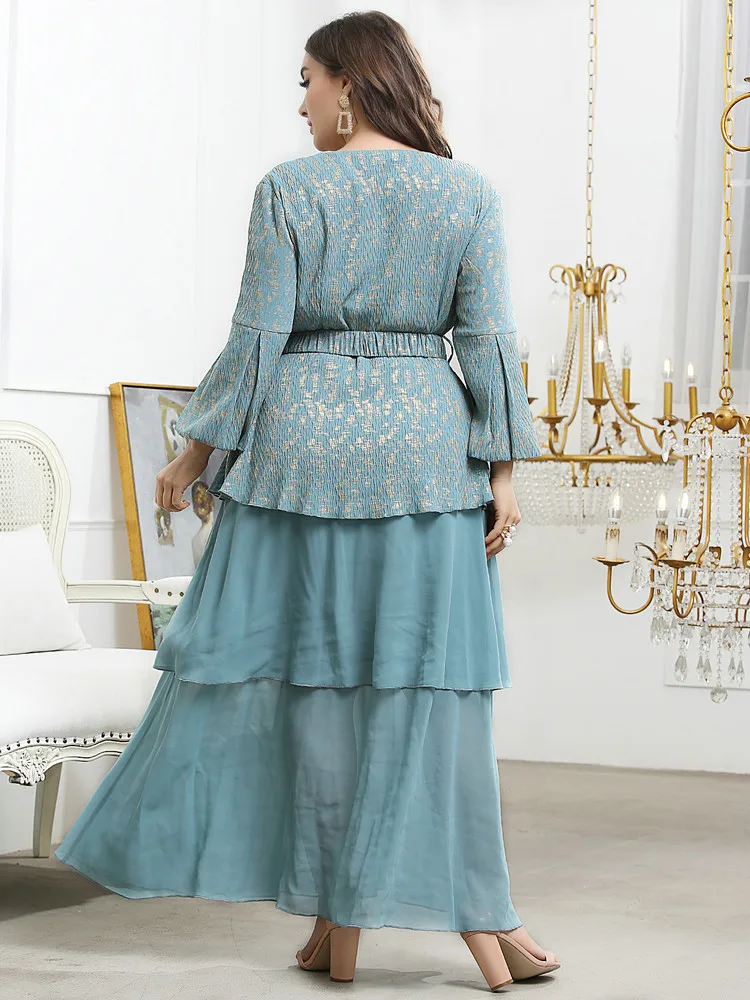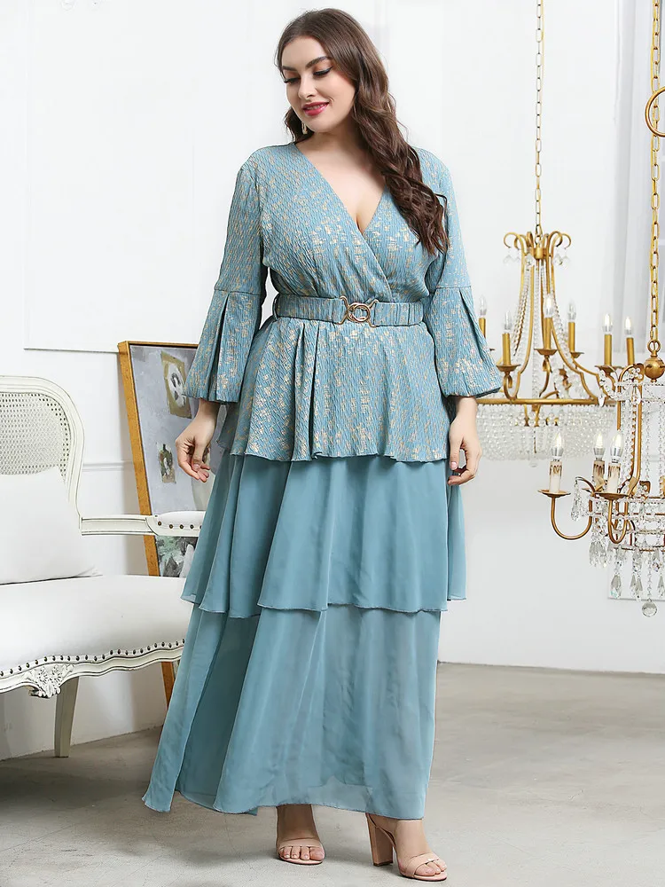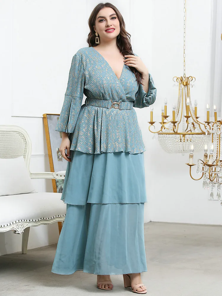 Women Elegant Large Plus Size Maxi Dress Slim Matching Oversized Long Evening Party Muslim Turkish Festival Clothing