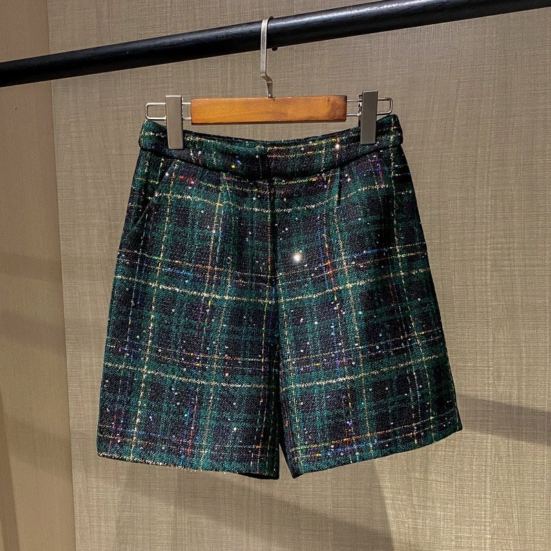Women Elegant Tweed Suit Blazer Jacket Coat Top And Short Pant Two Piece Set thick Outfit Winter Work Jacquard Office Clothing