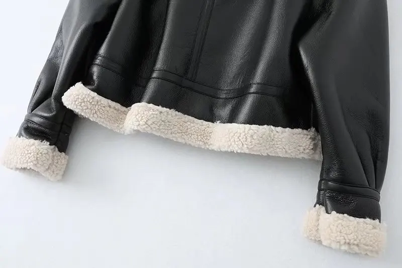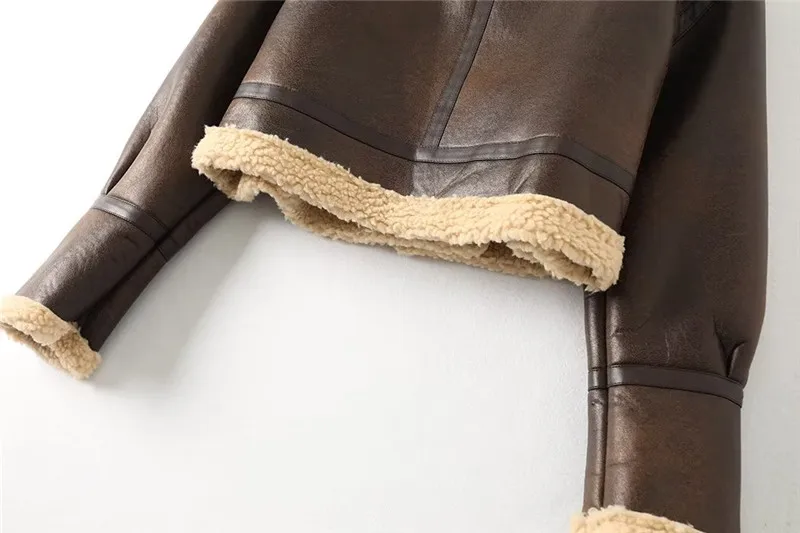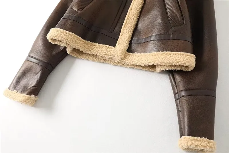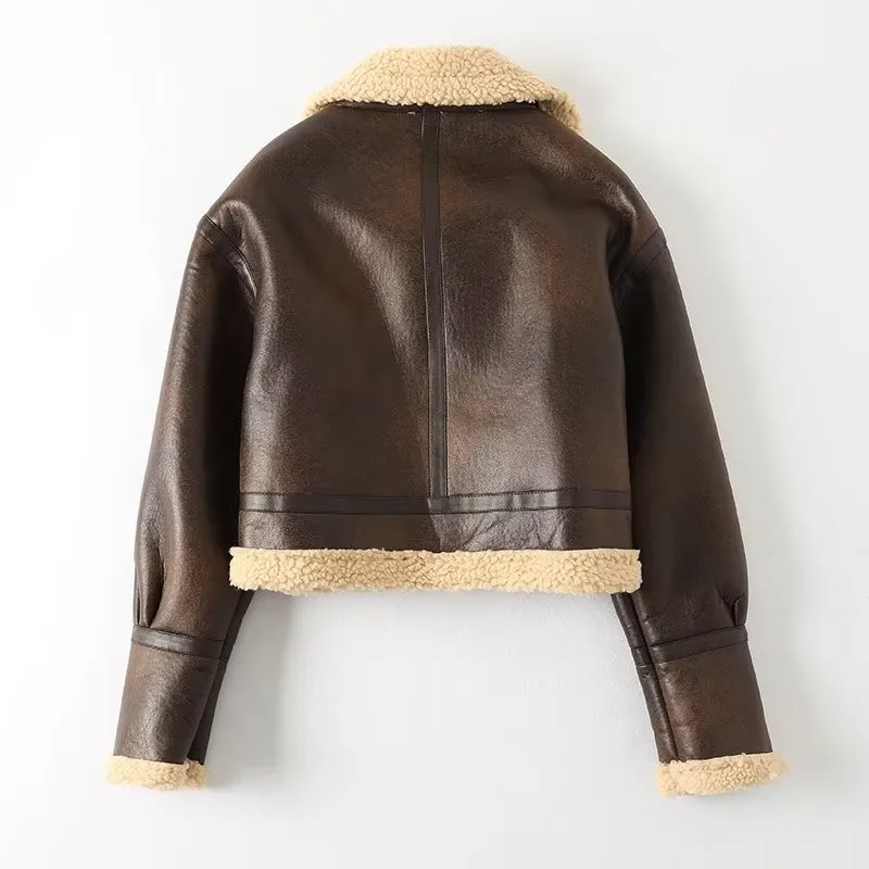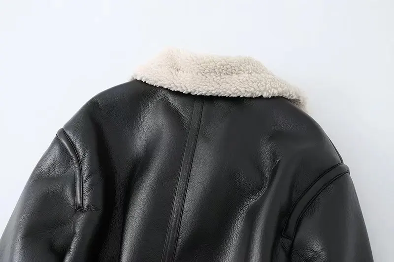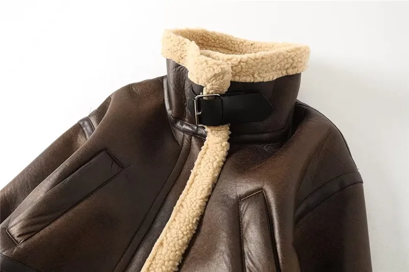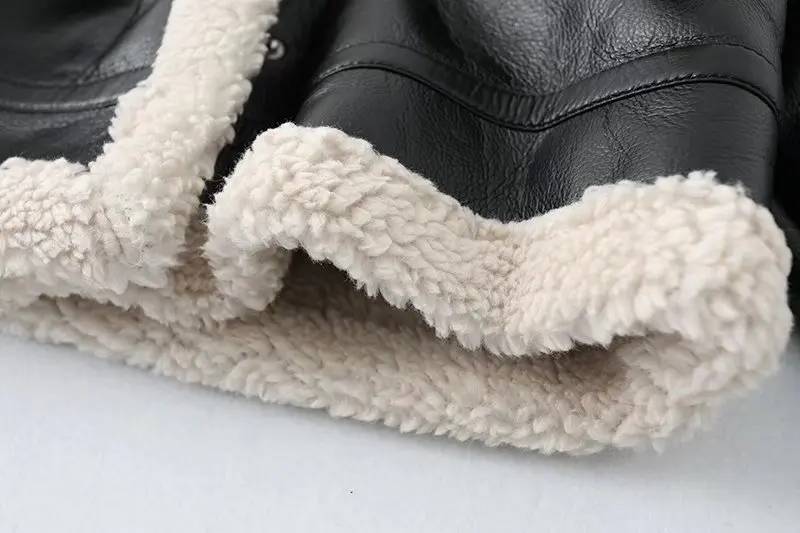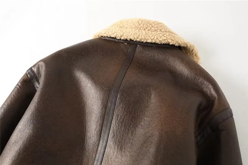 Women Jacket Fashion Thick Warm Faux Leather Coat Vintage Long Sleeve Flap Pocket Female Outerwear Chic Tops
