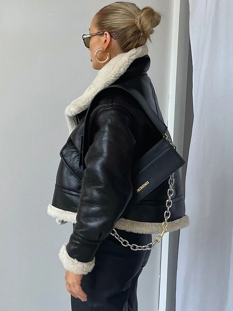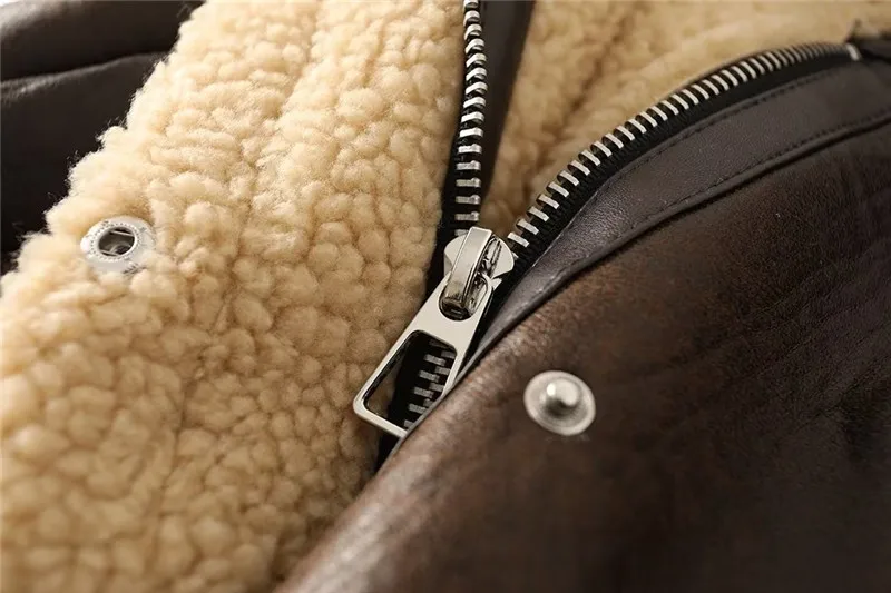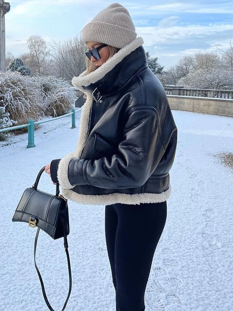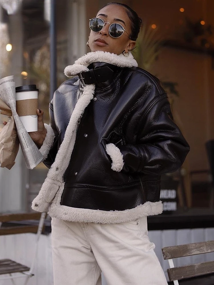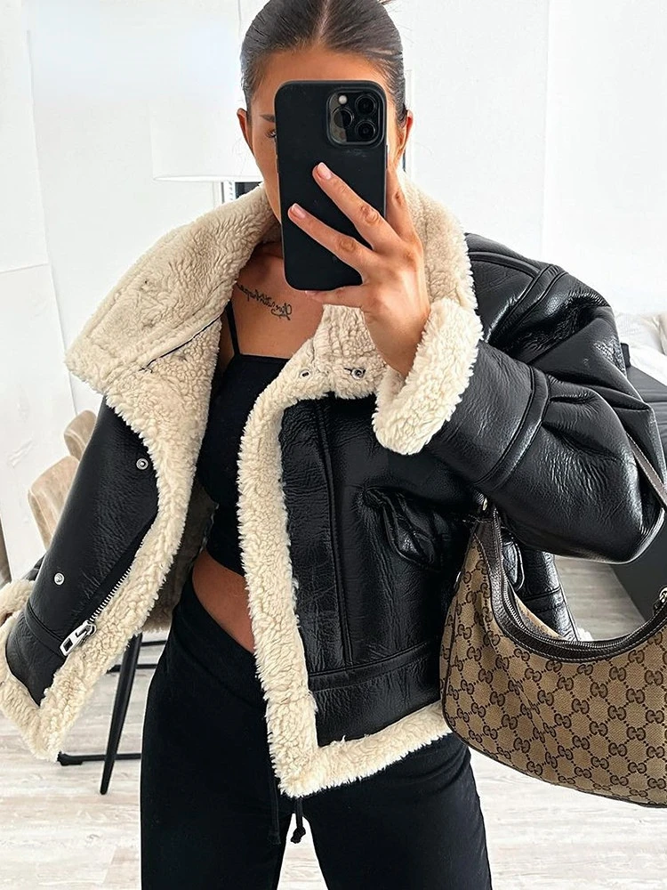 Women Jacket Fashion Thick Warm Faux Leather Coat Vintage Long Sleeve Flap Pocket Female Outerwear Chic Tops