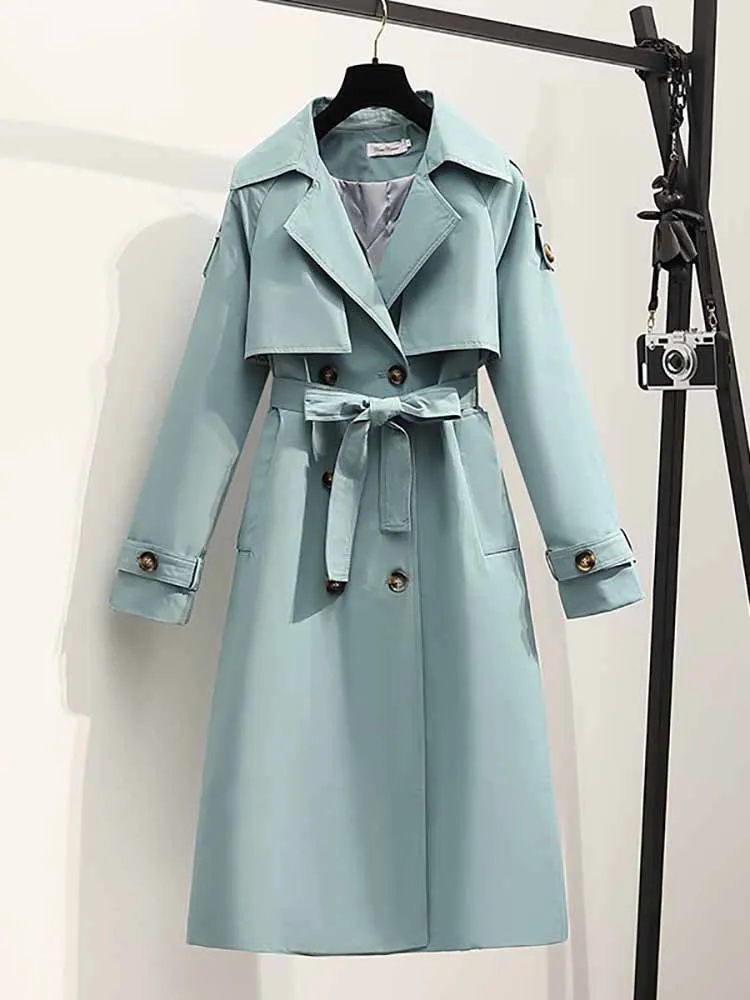 Women Long Trench Coat Fashion Windproof Coat Double Breasted Trench Coats Green Belt Windbreaker Winter