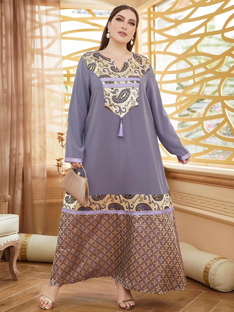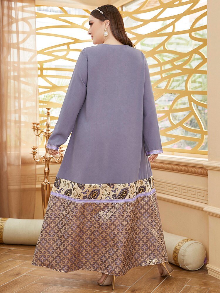 Women Plus Size Large Elegant Maxi Dresses Purple Long Sleeve Abaya Oversized Muslim Party Evening Festival Clothing