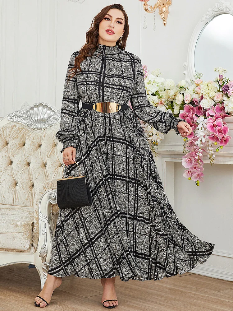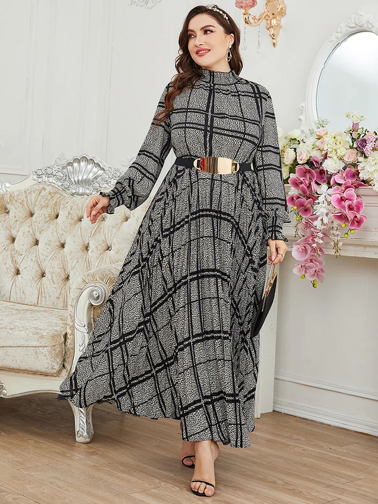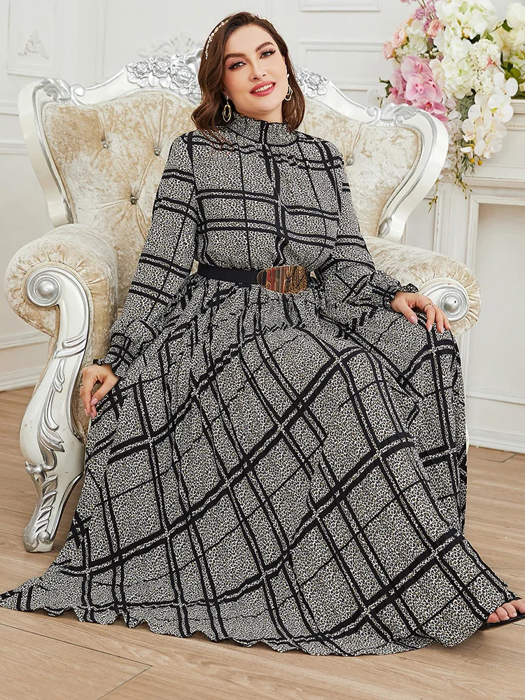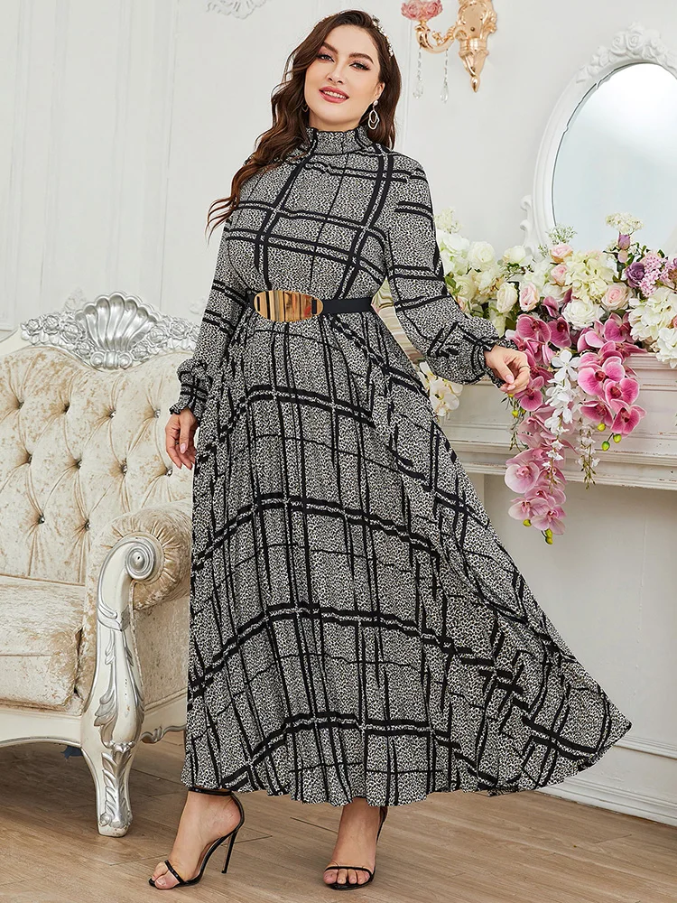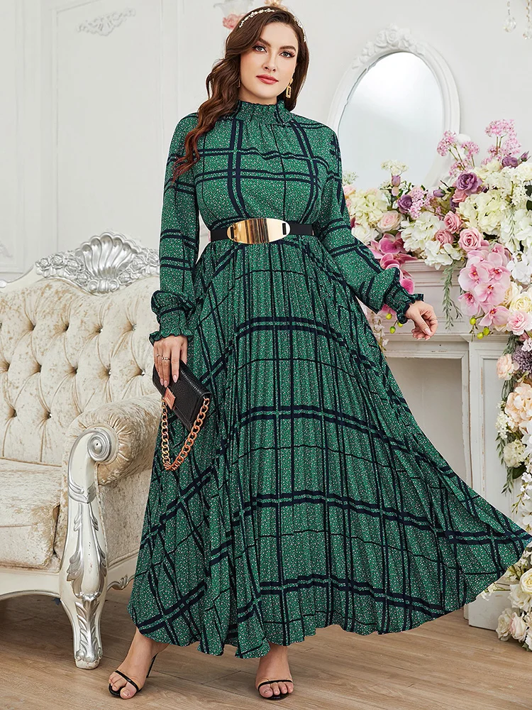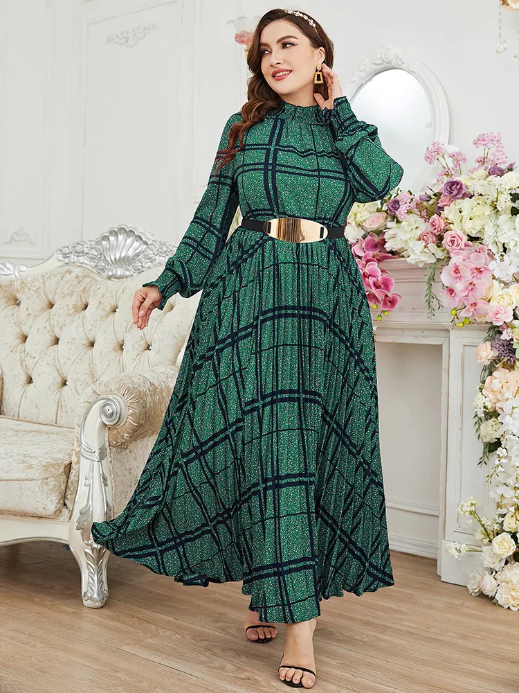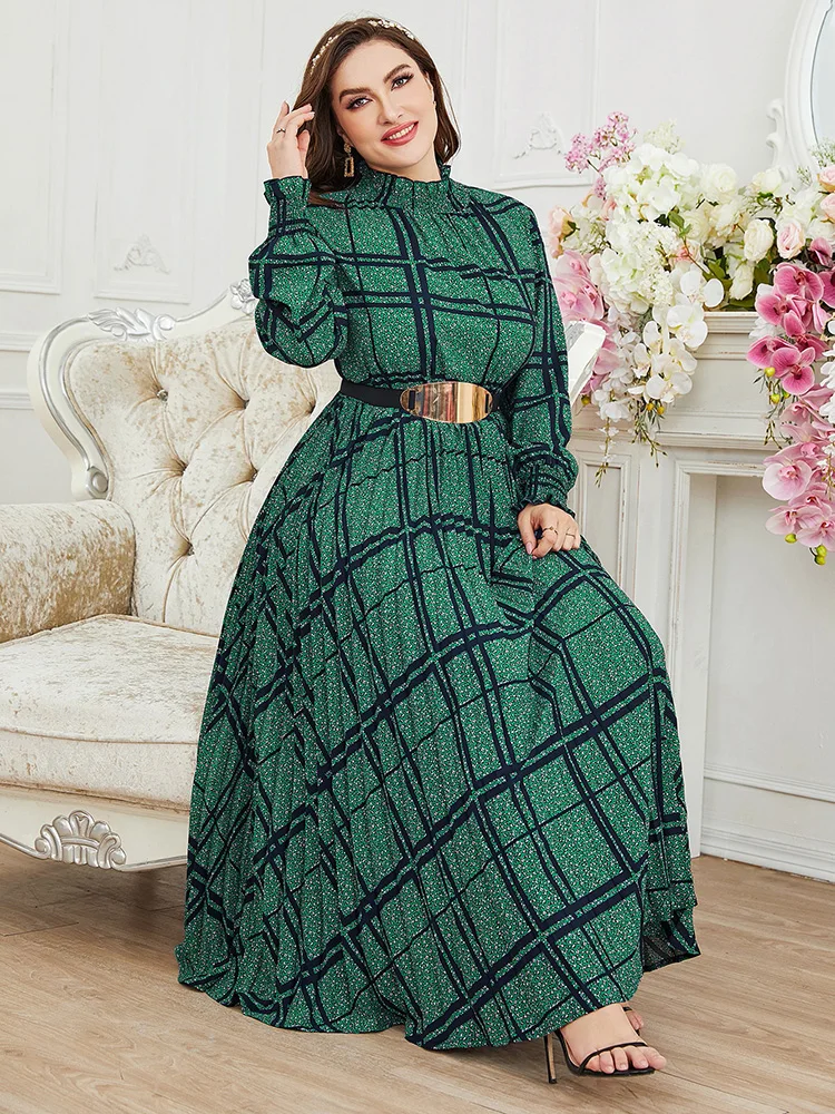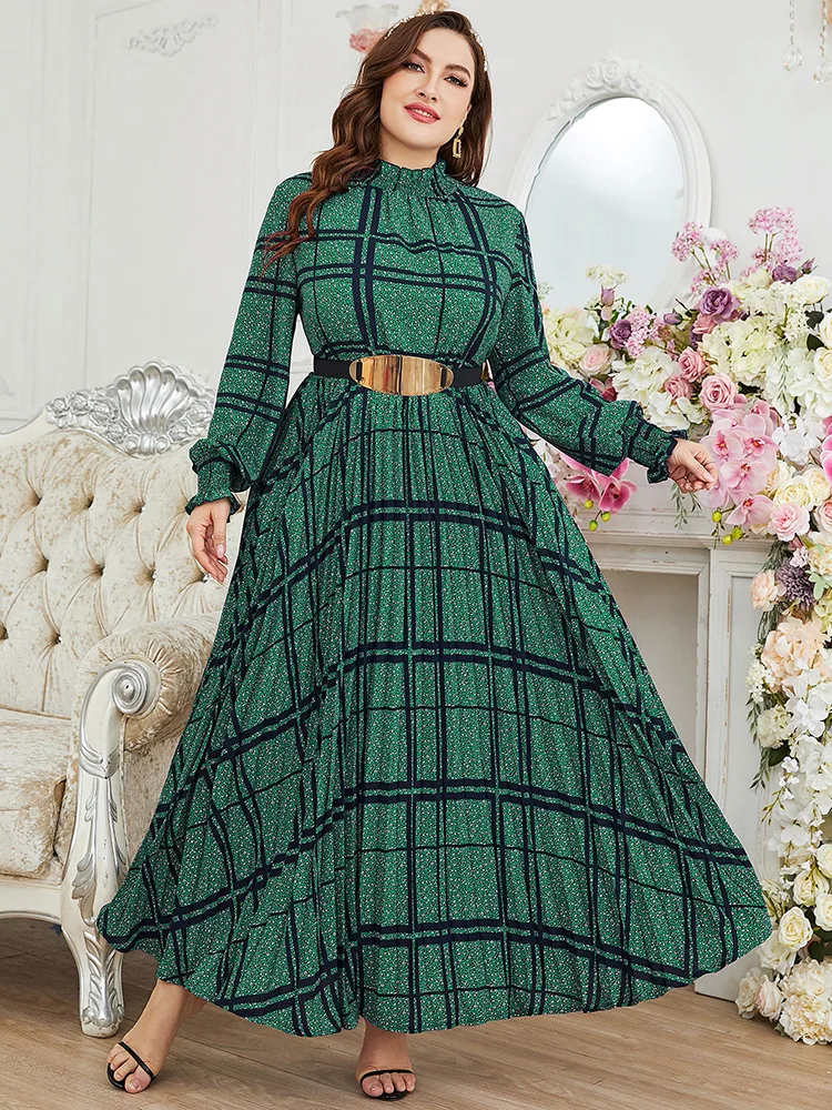 Women Plus Size Maxi Dress Spring Luxury Chic Elegant Long Sleeve Muslim Turkish Party Evening Wedding Robe Clothing