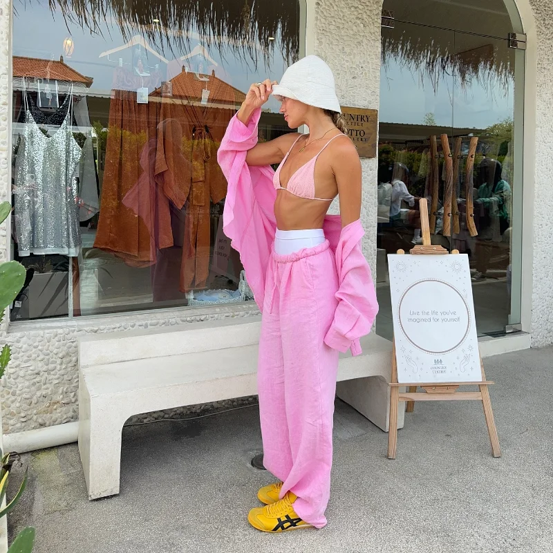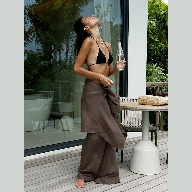 • Model Number: Brown Cotton Linen Loose Pants Set