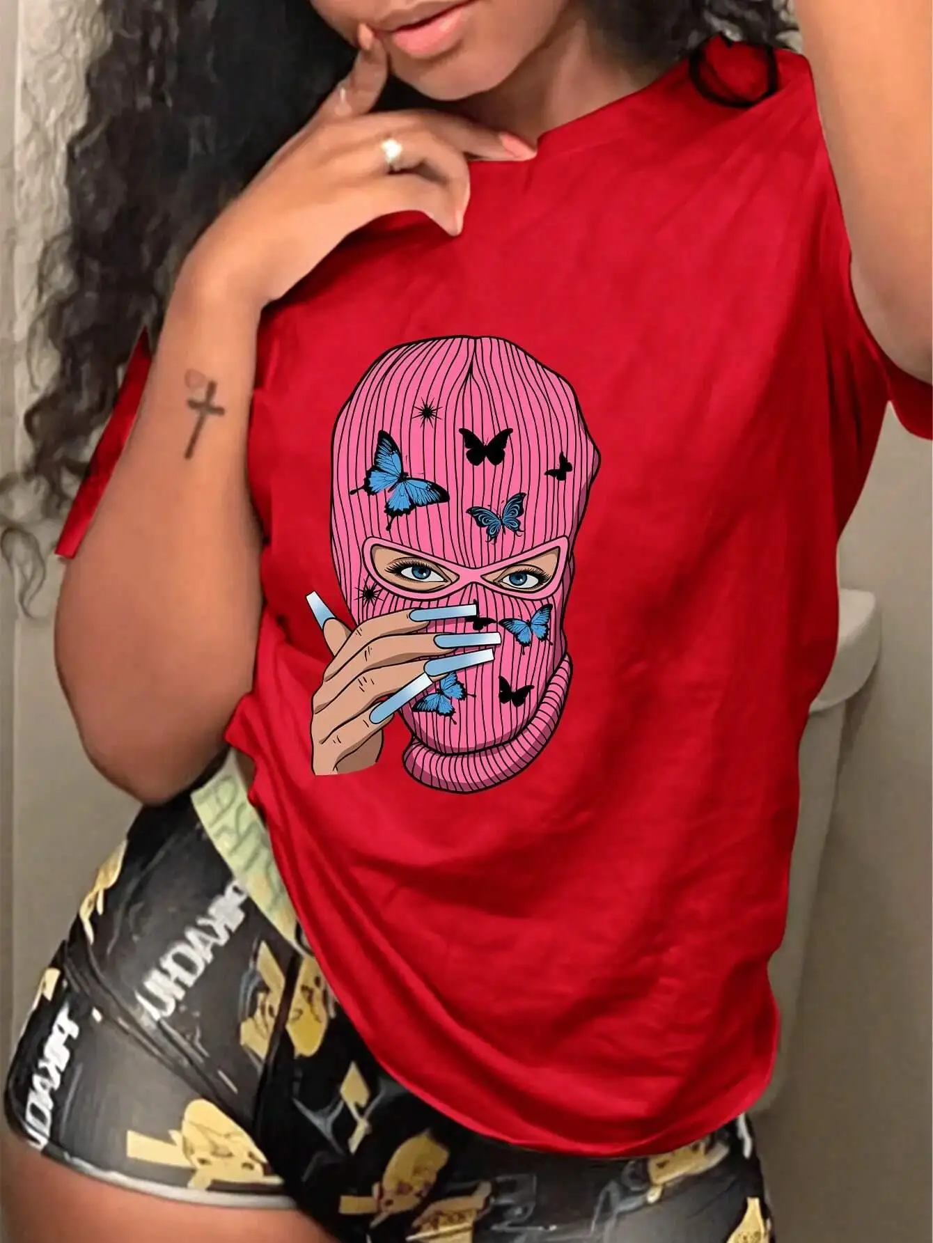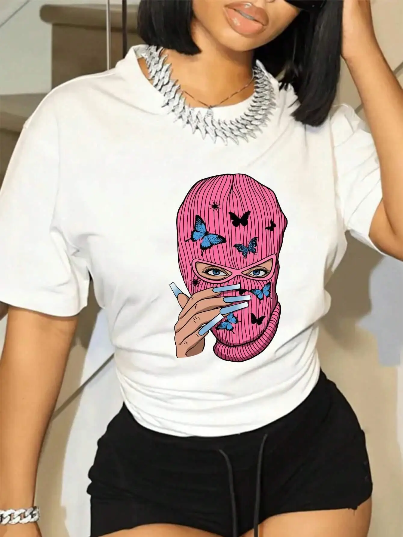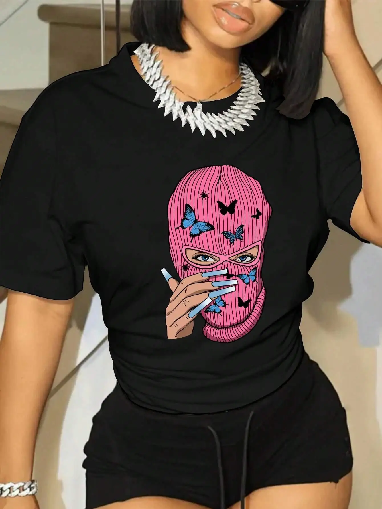 Women T-Shirt Women’S Masks & Butterflies Print Short Sleeve Summer Fashion O-Neck Tees Clothing Soft Oversize Female Clothes