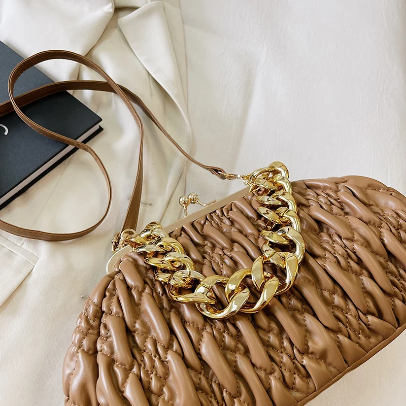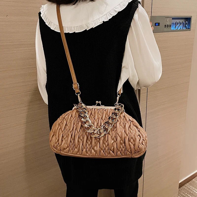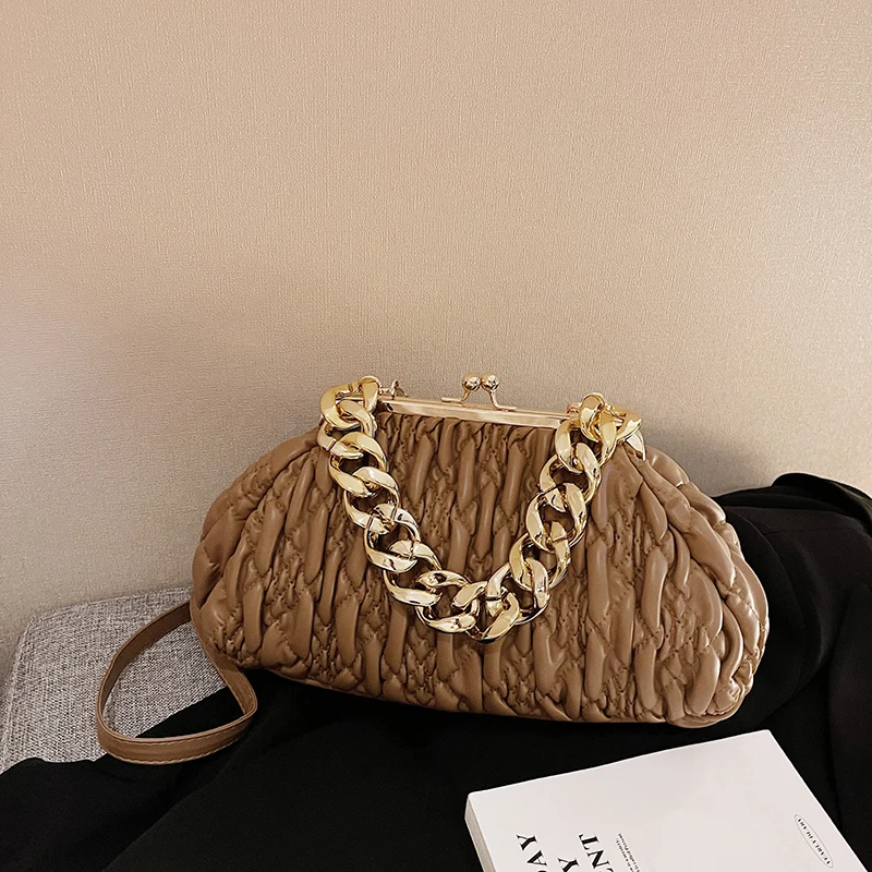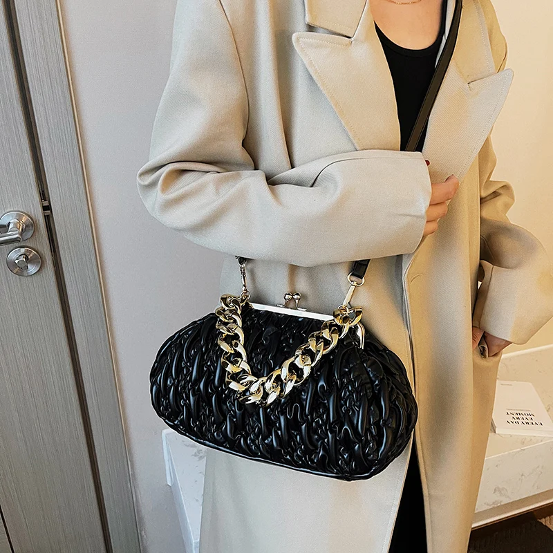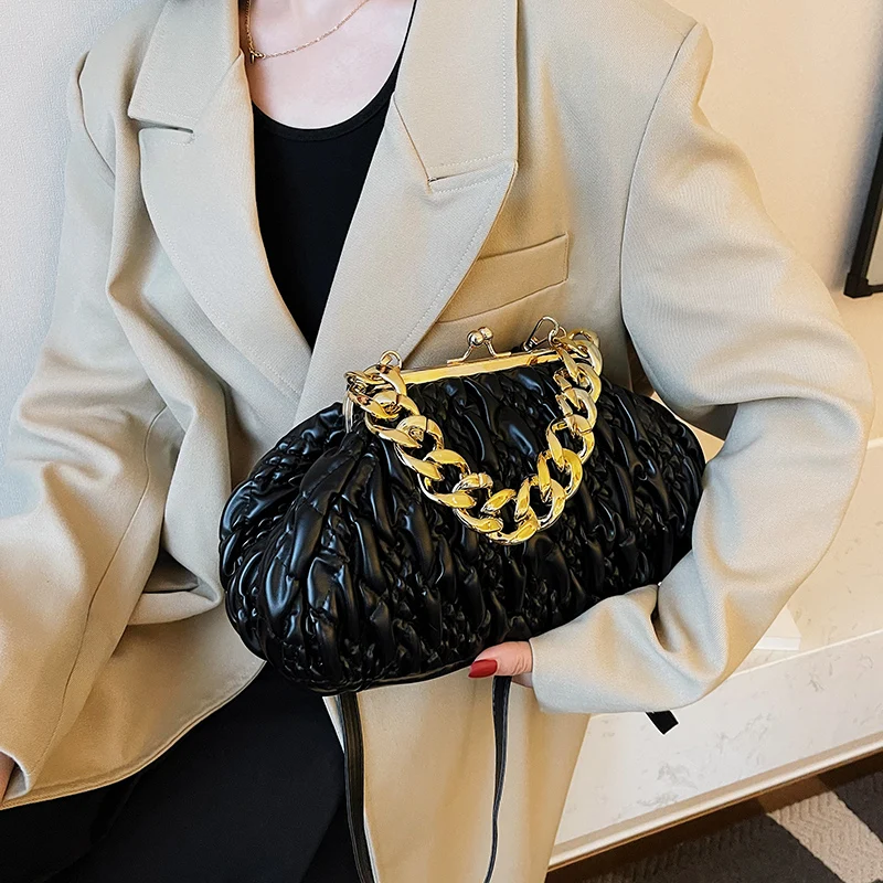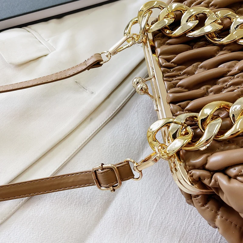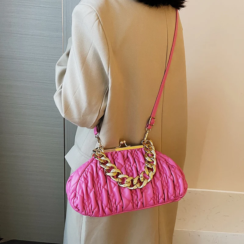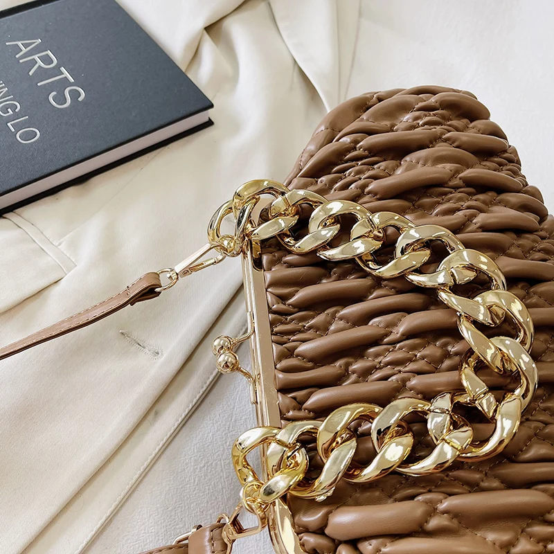Women’s Bag Luxury Brand Designer Handbag Purse Thick Chain Shoulder Crossbody Bag PU Leather Fashion Clutch