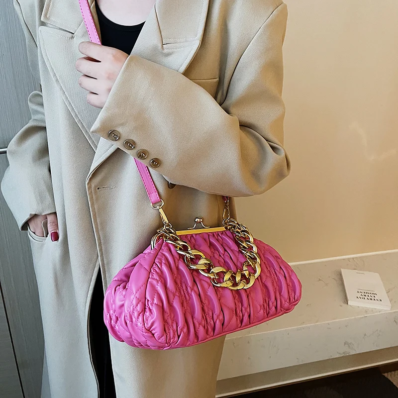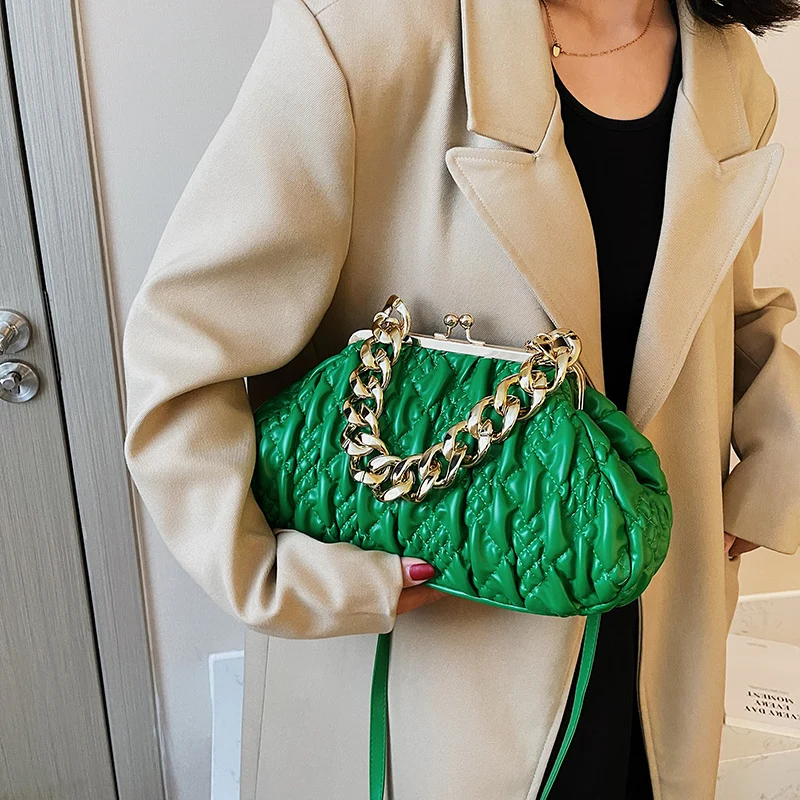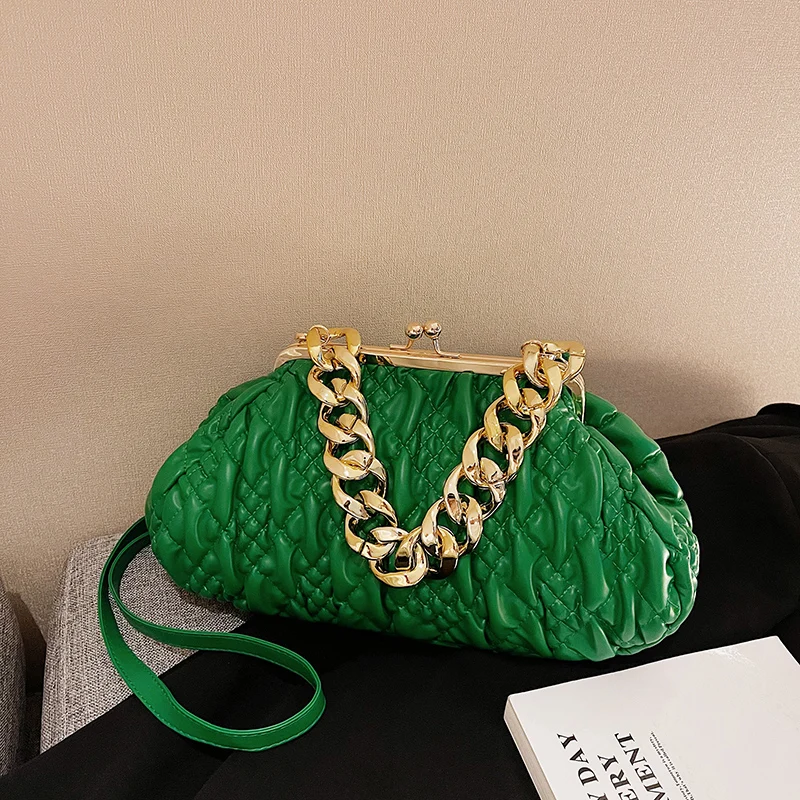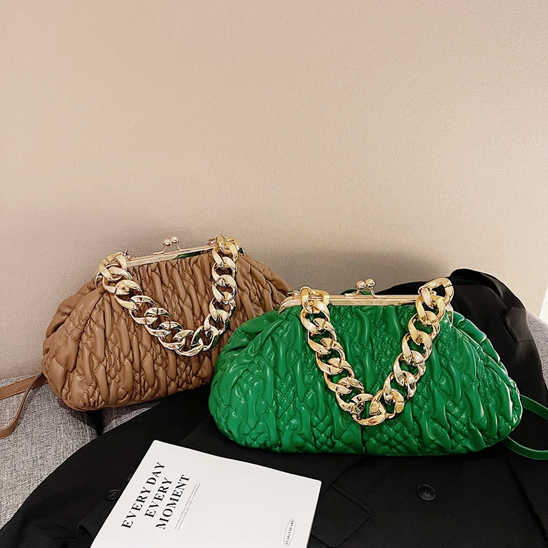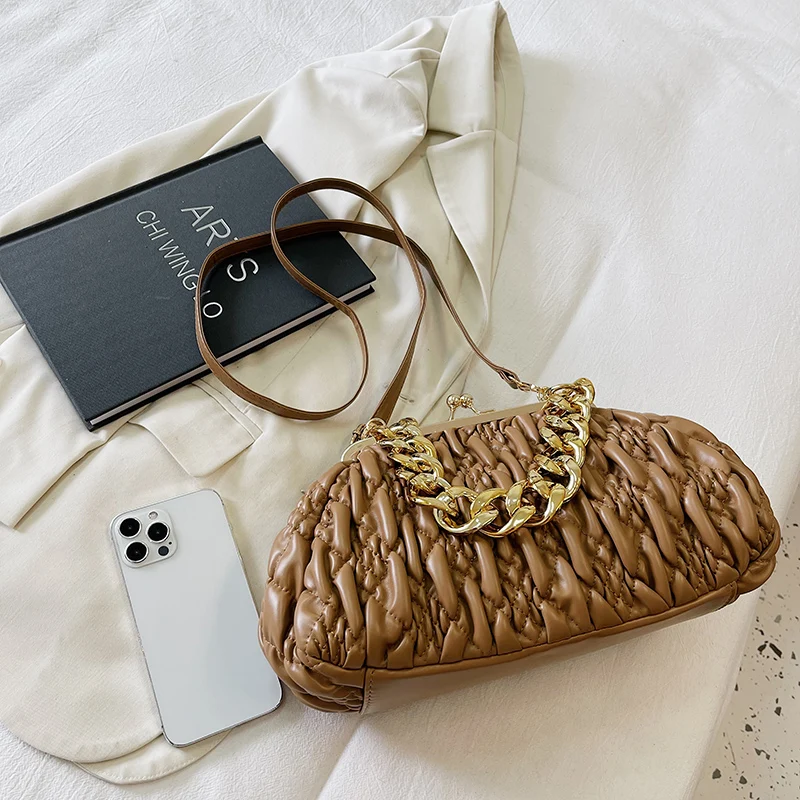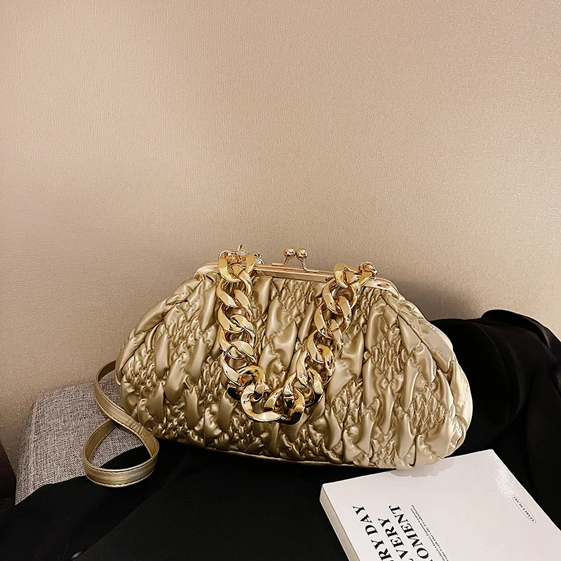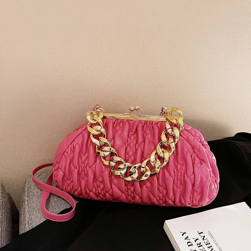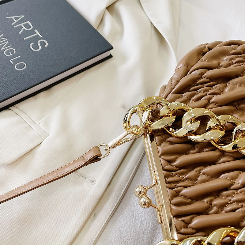 Women’s Bag Luxury Brand Designer Handbag Purse Thick Chain Shoulder Crossbody Bag PU Leather Fashion Clutch