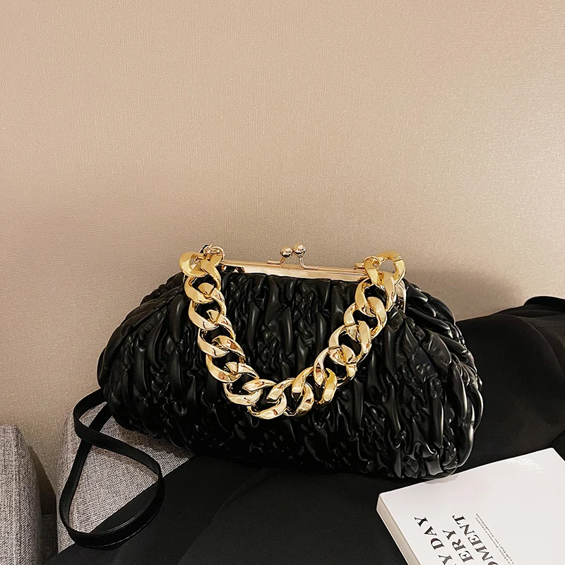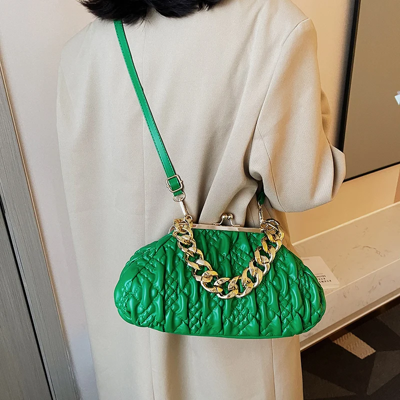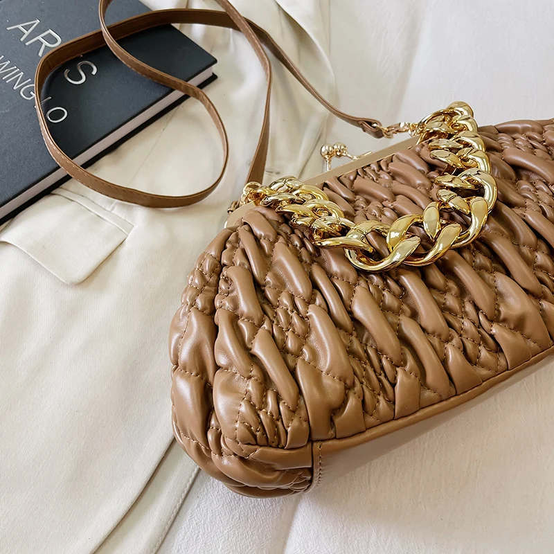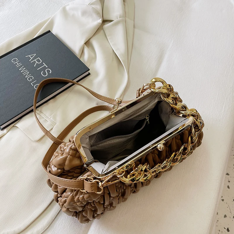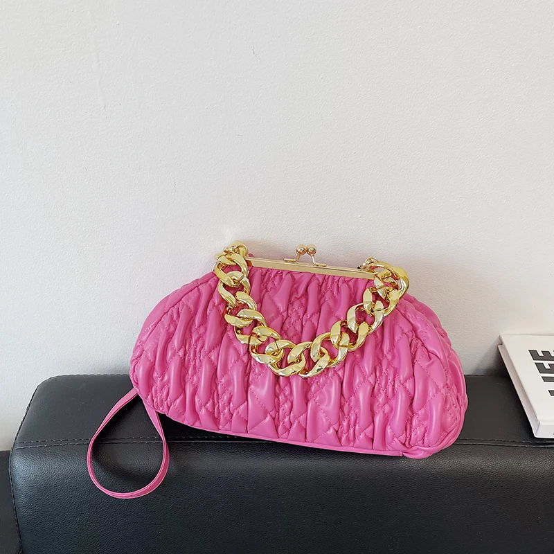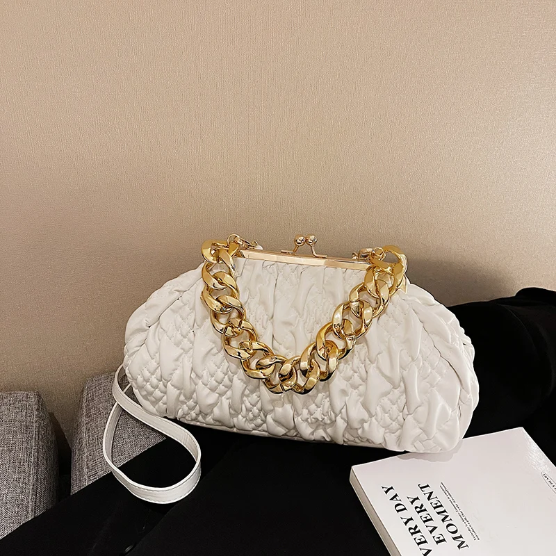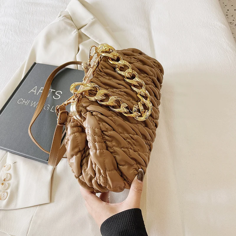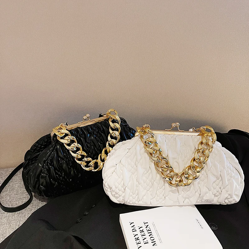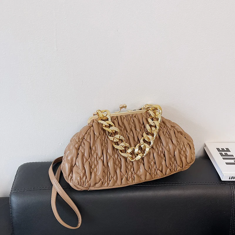 Women’s Bag Luxury Brand Designer Handbag Purse Thick Chain Shoulder Crossbody Bag PU Leather Fashion Clutch