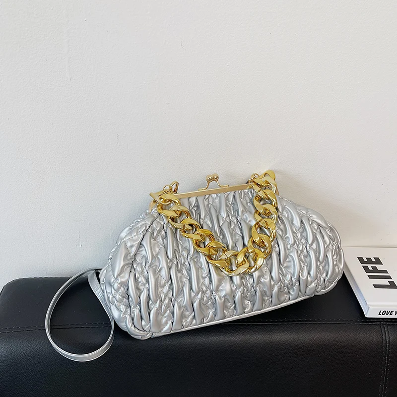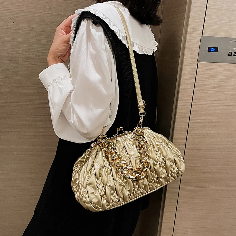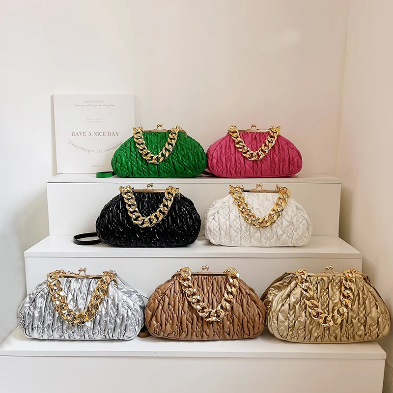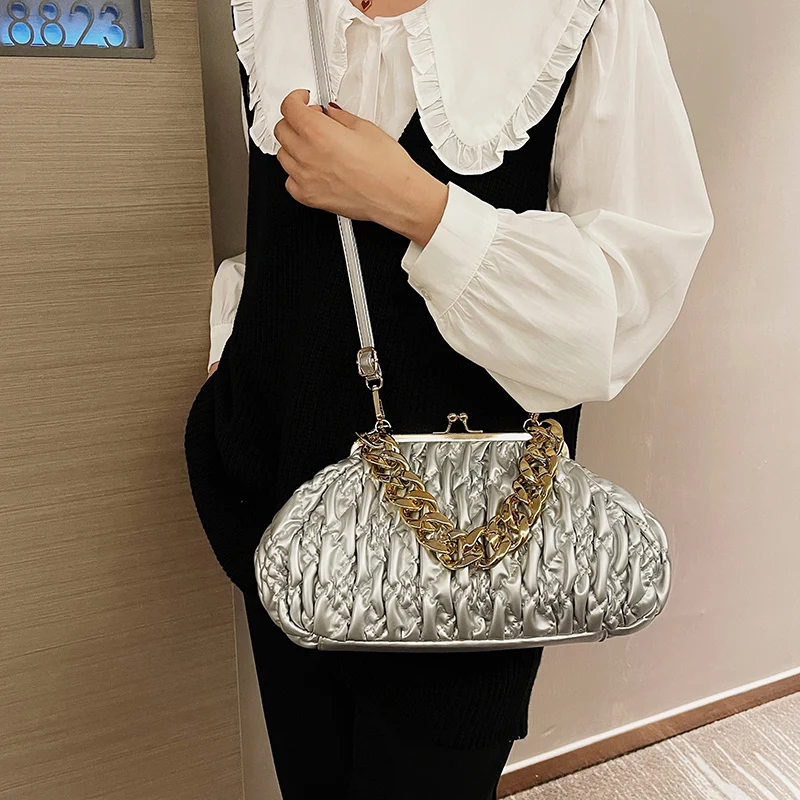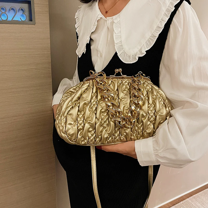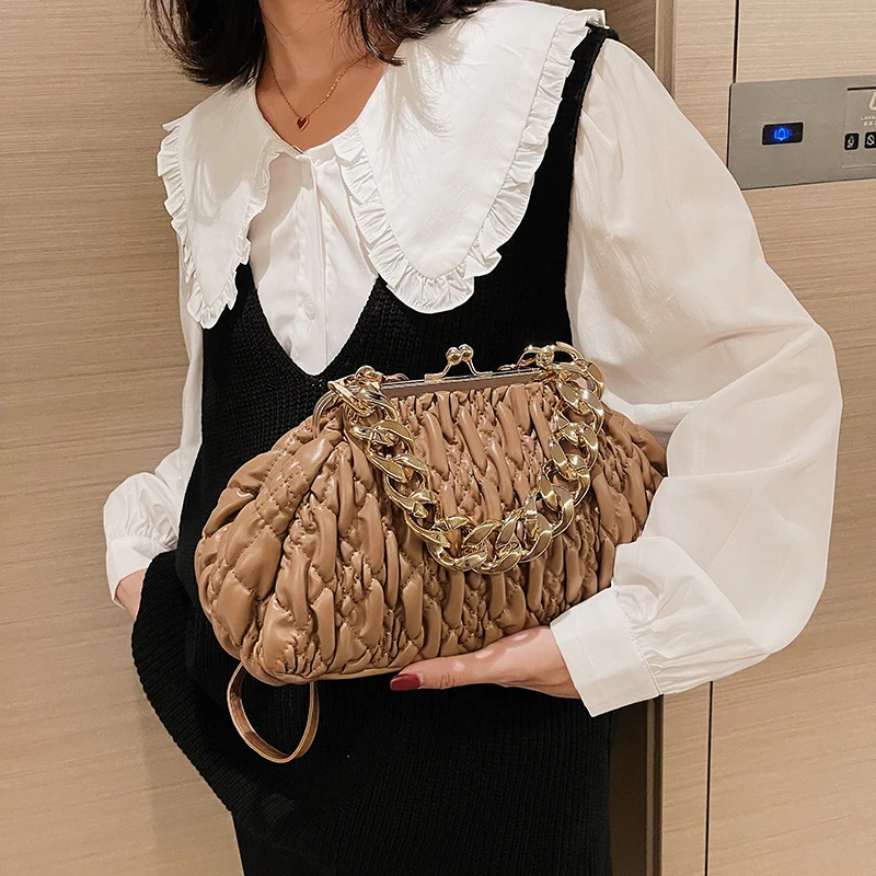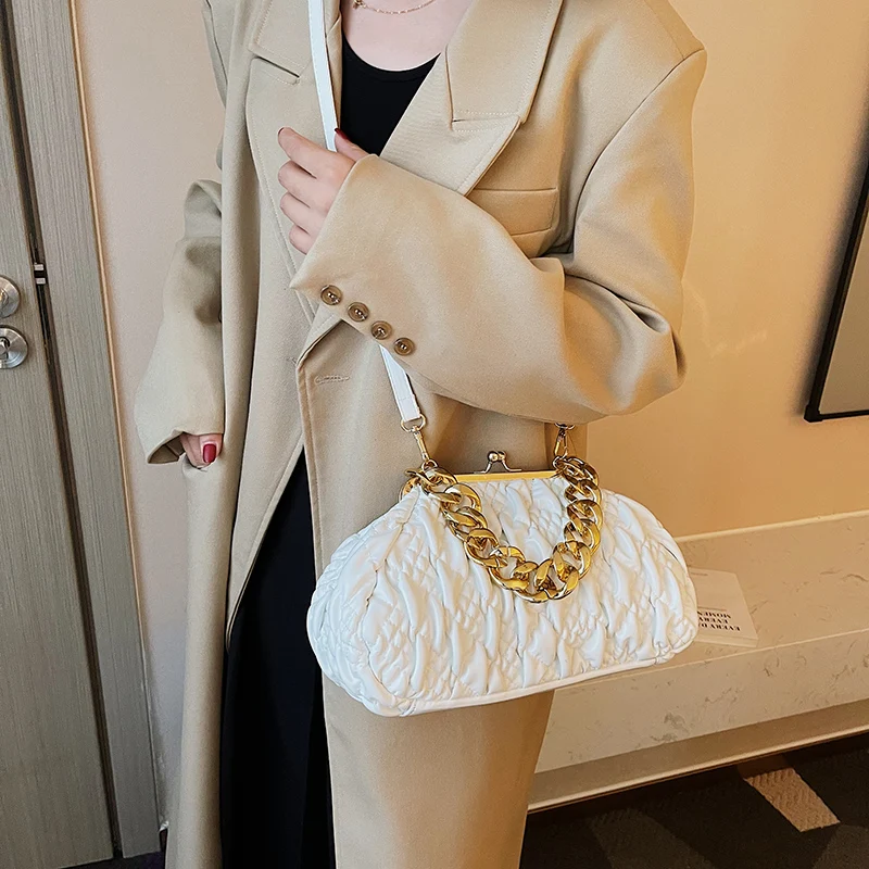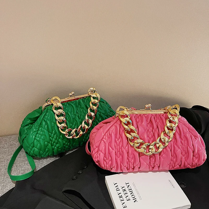 Women’s Bag Luxury Brand Designer Handbag Purse Thick Chain Shoulder Crossbody Bag PU Leather Fashion Clutch