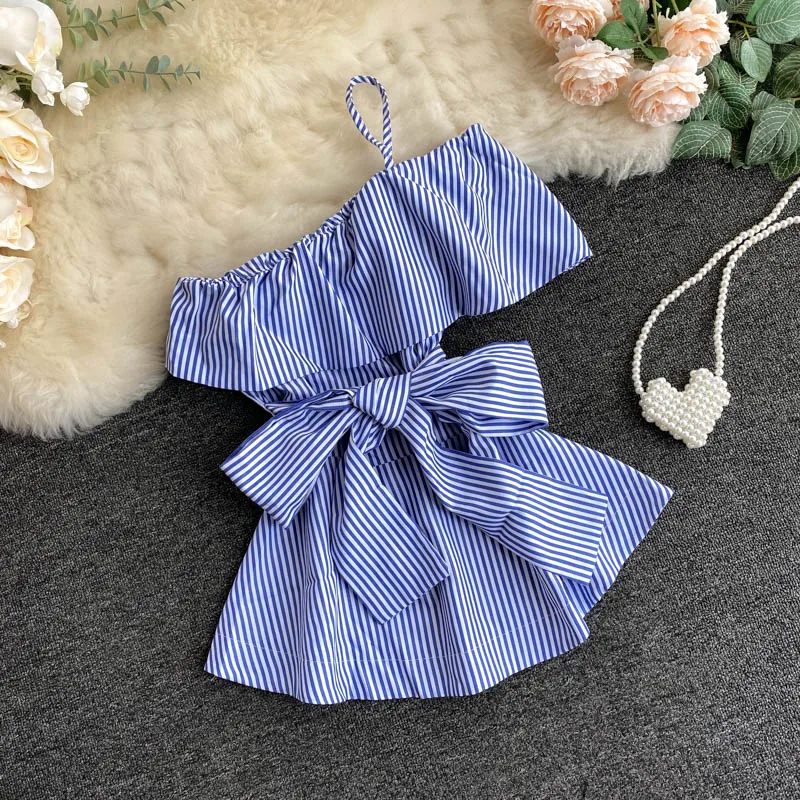 Womens blouses women tops strap stripe blusas woman tops french chic blouse summer new ins