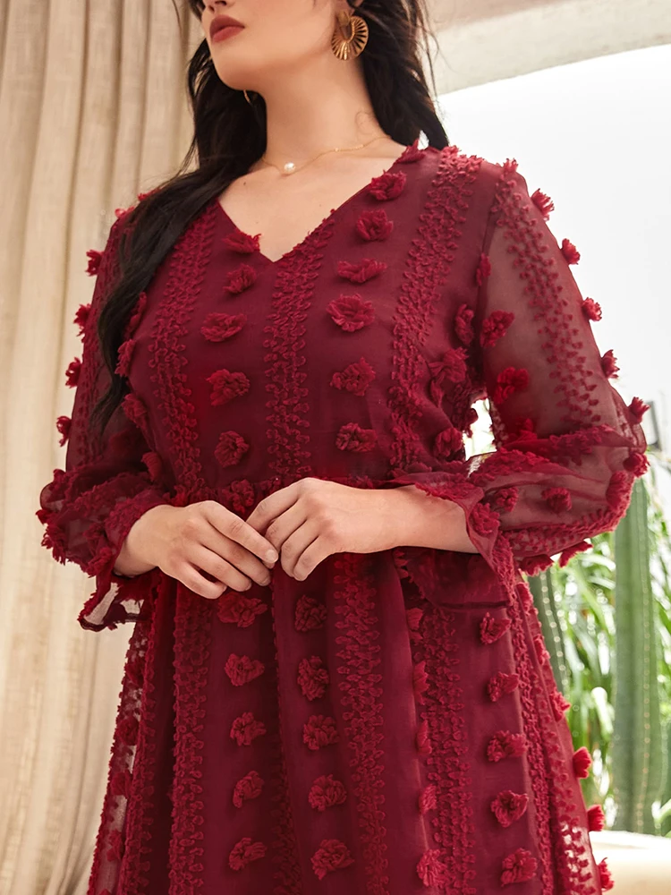 Women’s Chic Elegant Plus Size Maxi Dresses Spring Winter Red Large Long Sleeve Evening Party Festival Robe Clothing