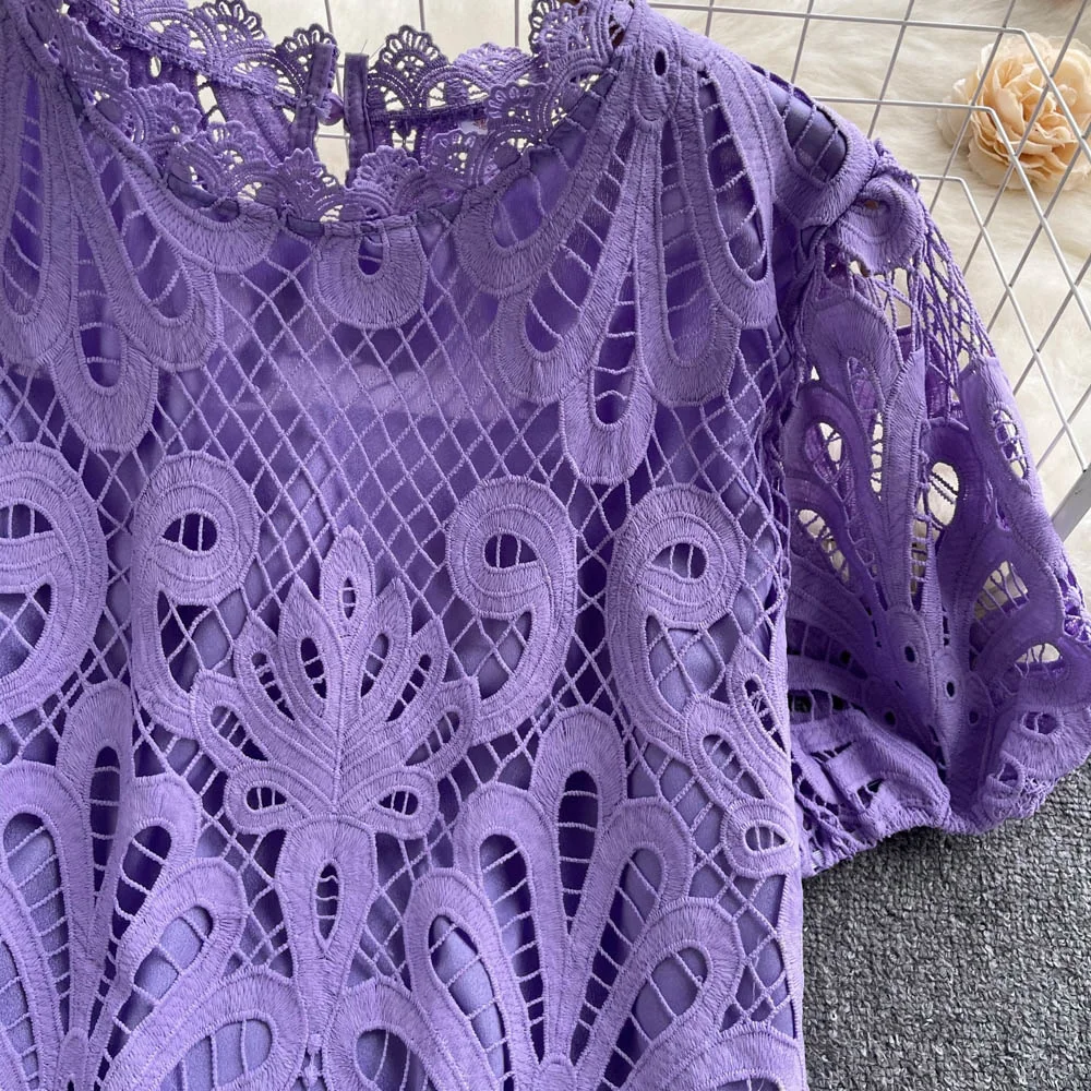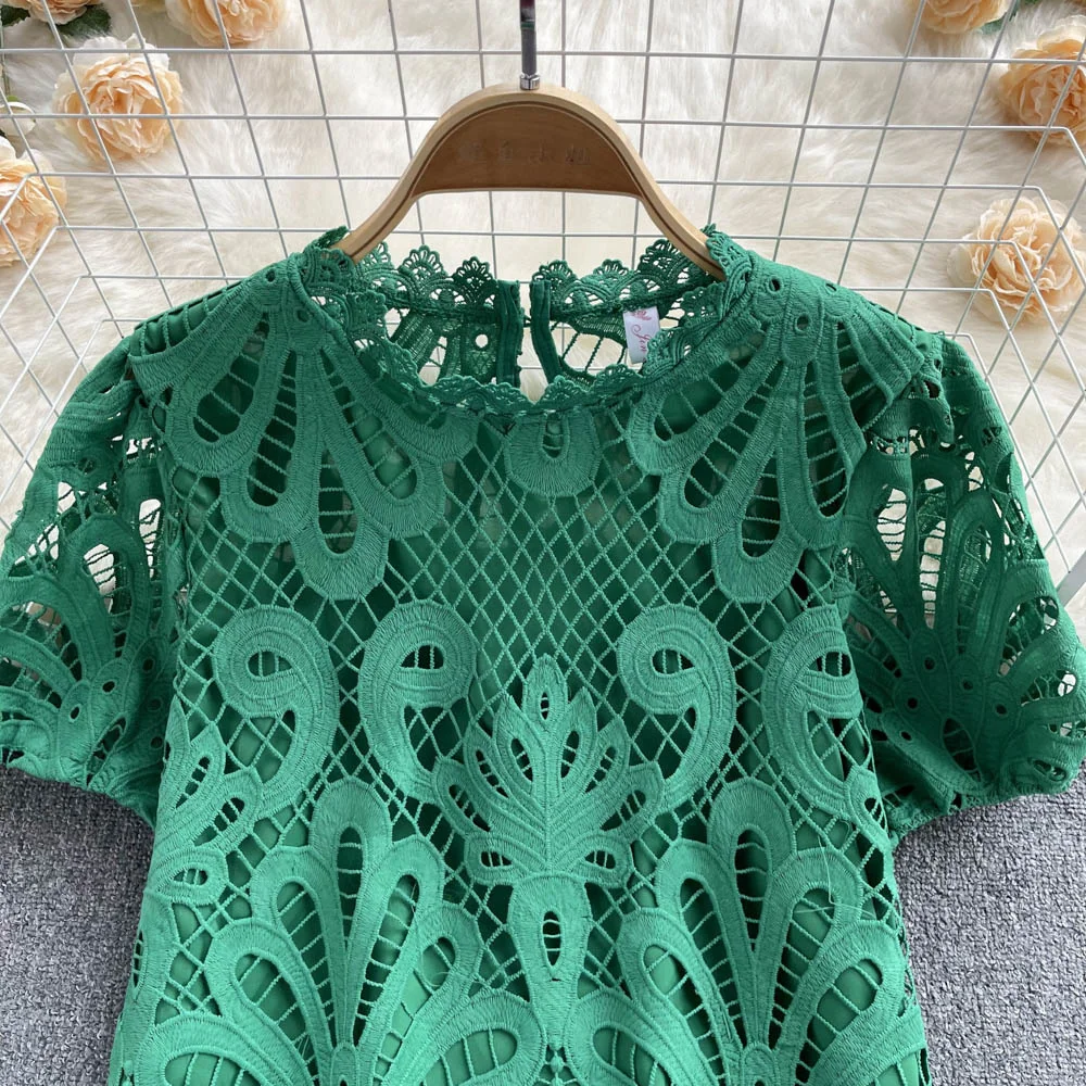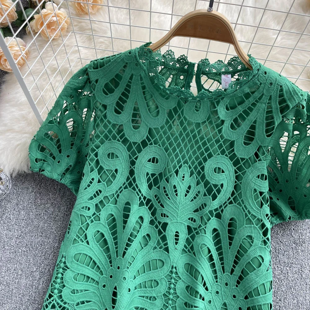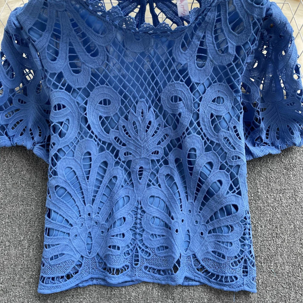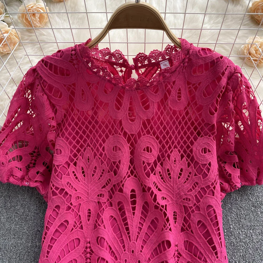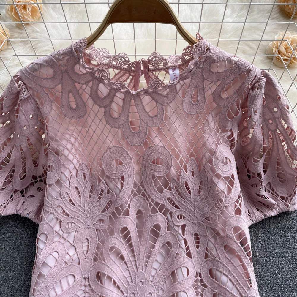 Women’s Lace top female hollow out temperament puff sleeve loose Slim Clothing Sweet Korea Chic Girl’s Summer