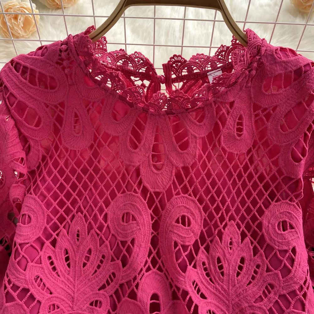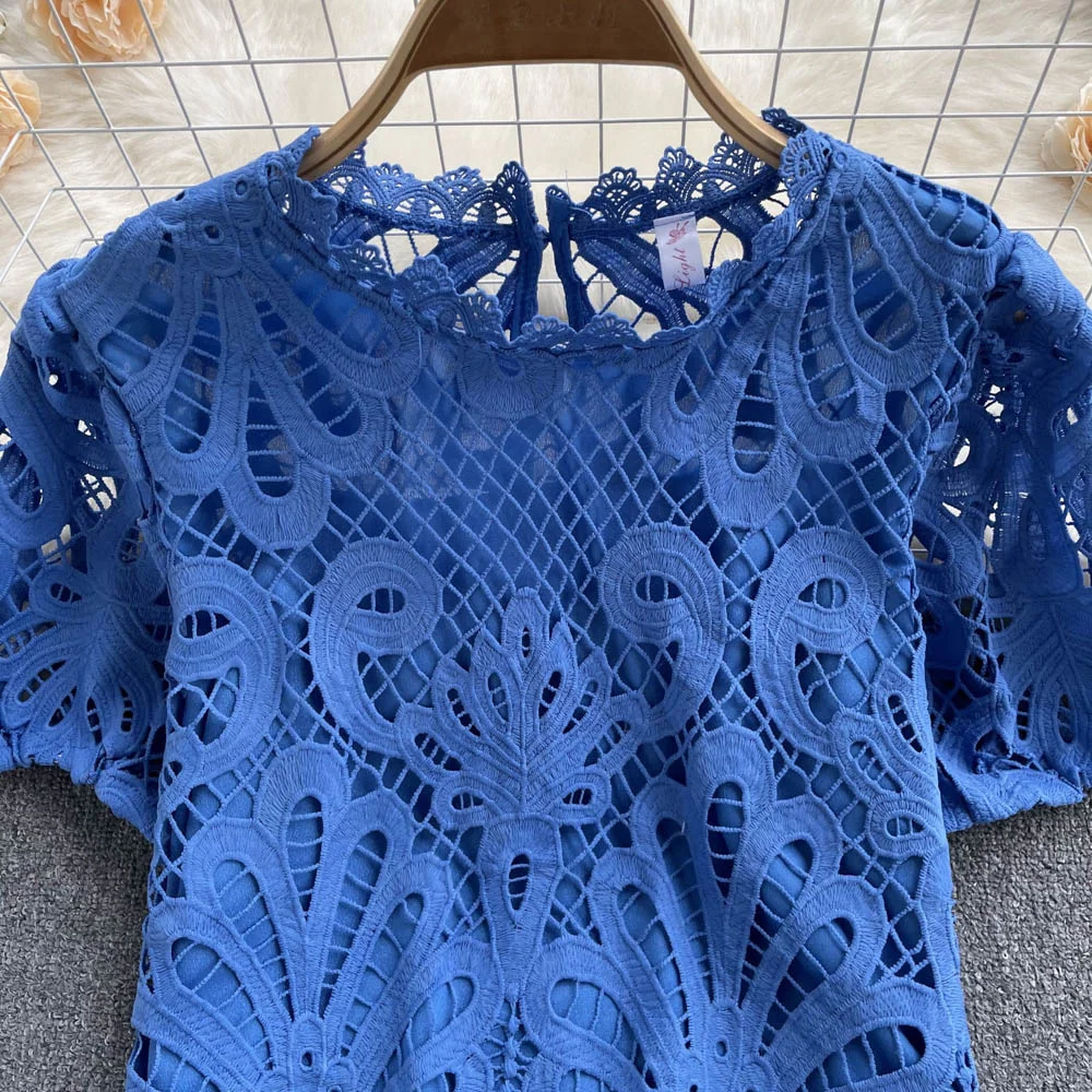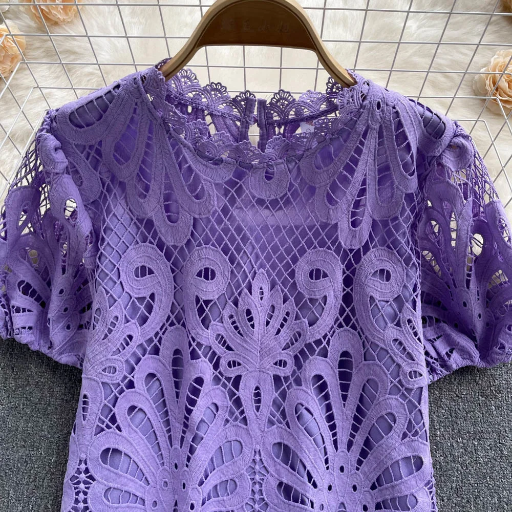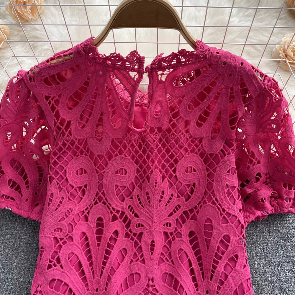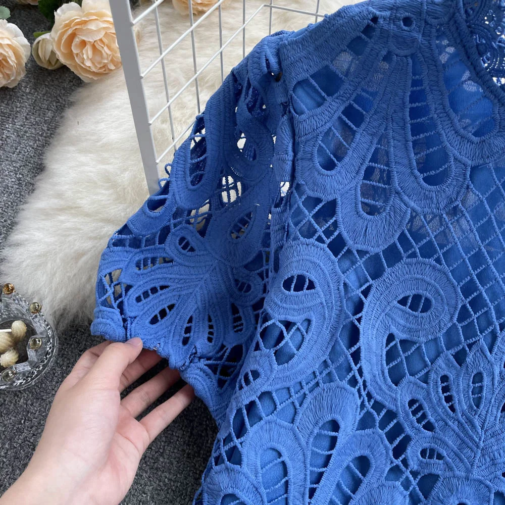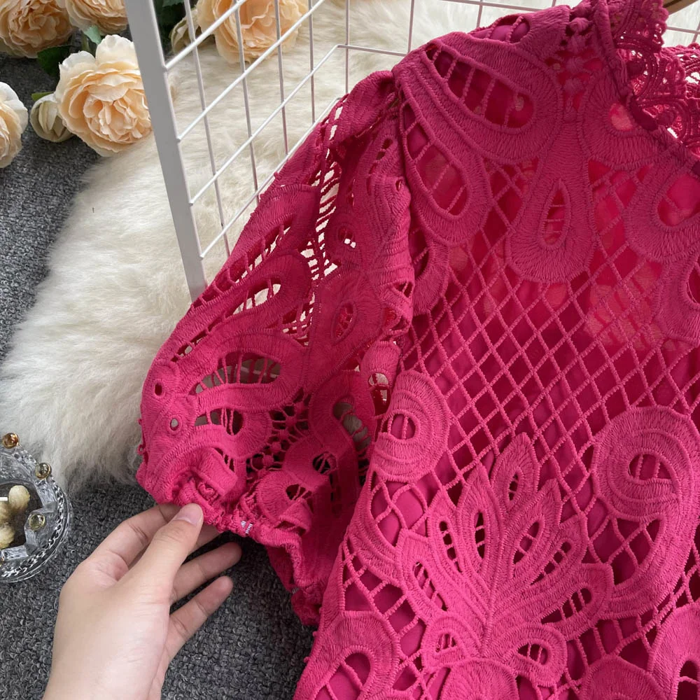 Women’s Lace top female hollow out temperament puff sleeve loose Slim Clothing Sweet Korea Chic Girl’s Summer