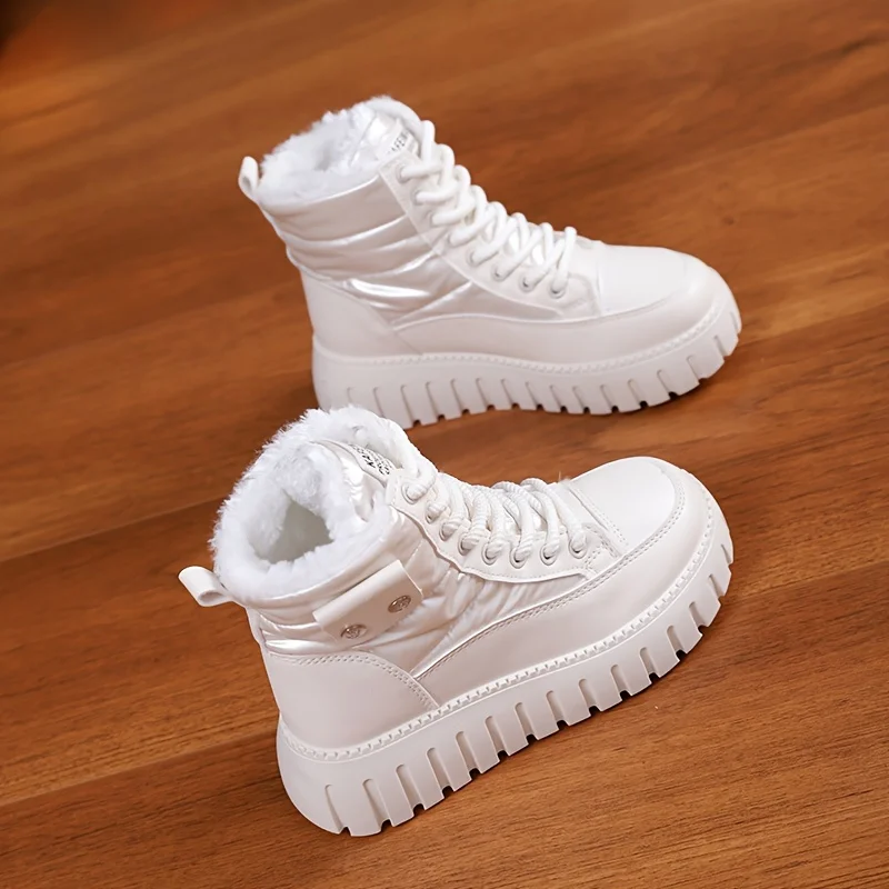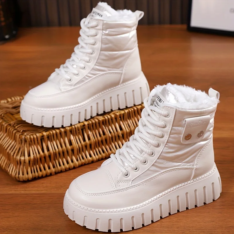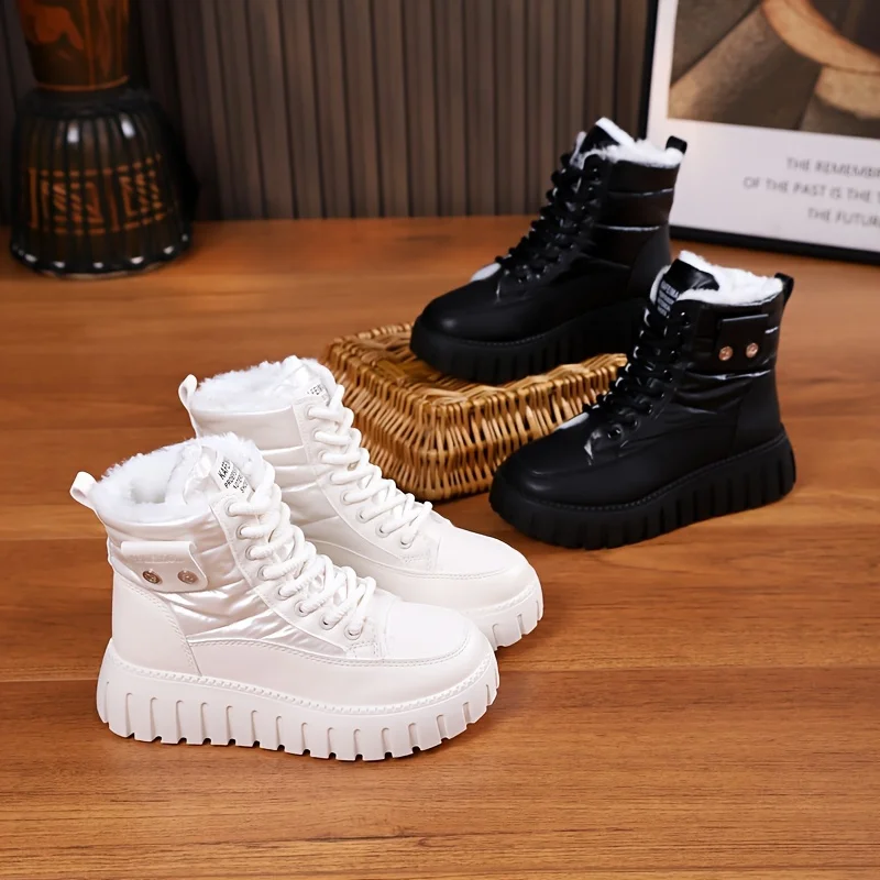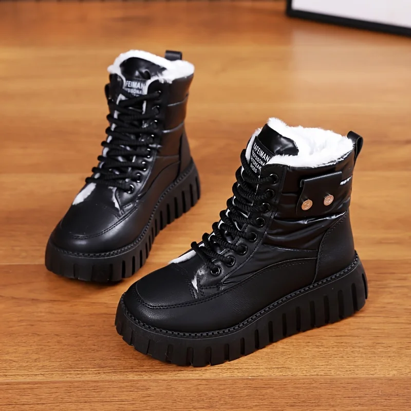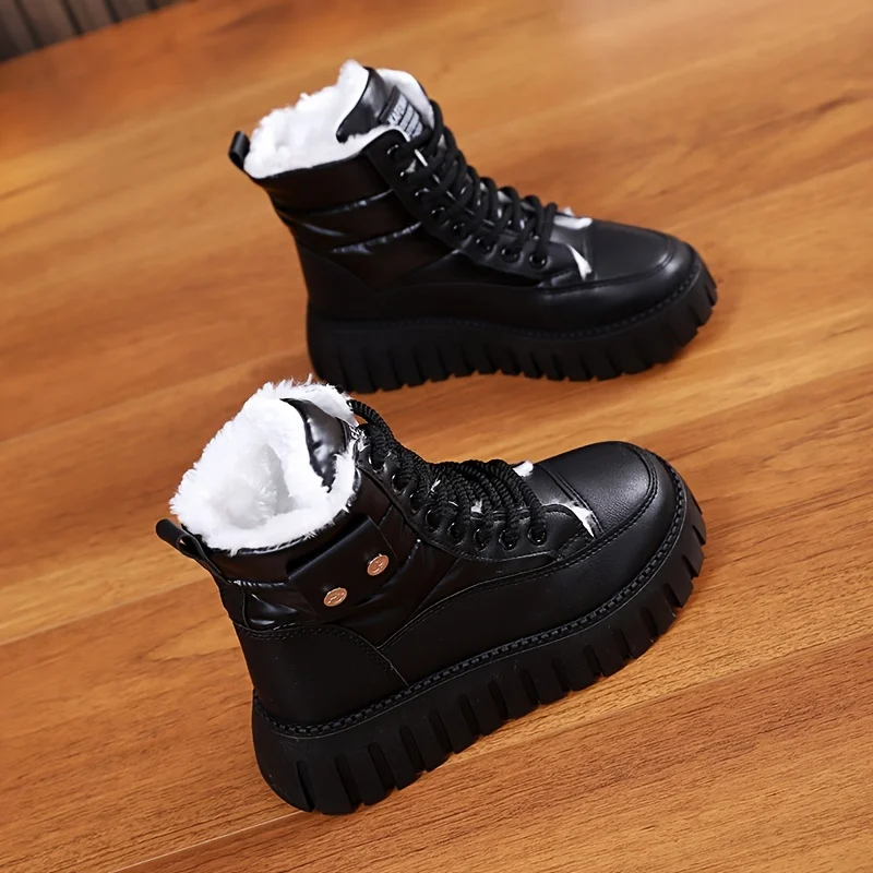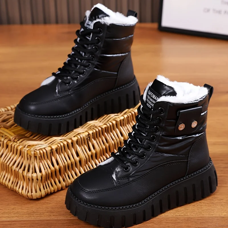 Women’s Round Toe Non-slip Warm Snow Boots Fleece Lining Comfortable Thick Soled Platform Fashion Ankle Boots