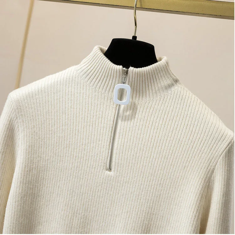 Be the first to review “Zipper Half Turtleneck Sweater Women Plush Thickened Long Sleeve Knitwear Black Underlay Winter Warm Top Solid Jumper”